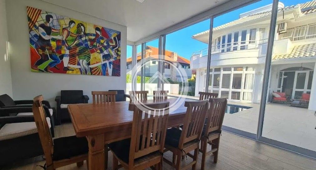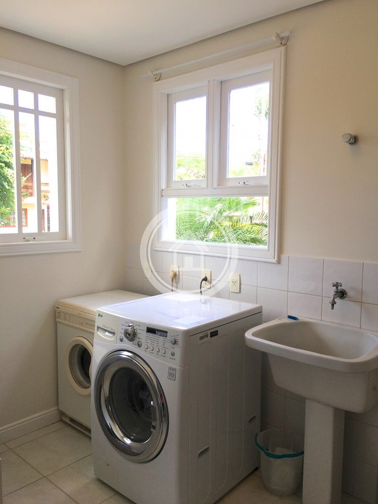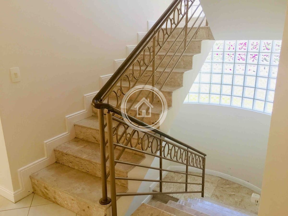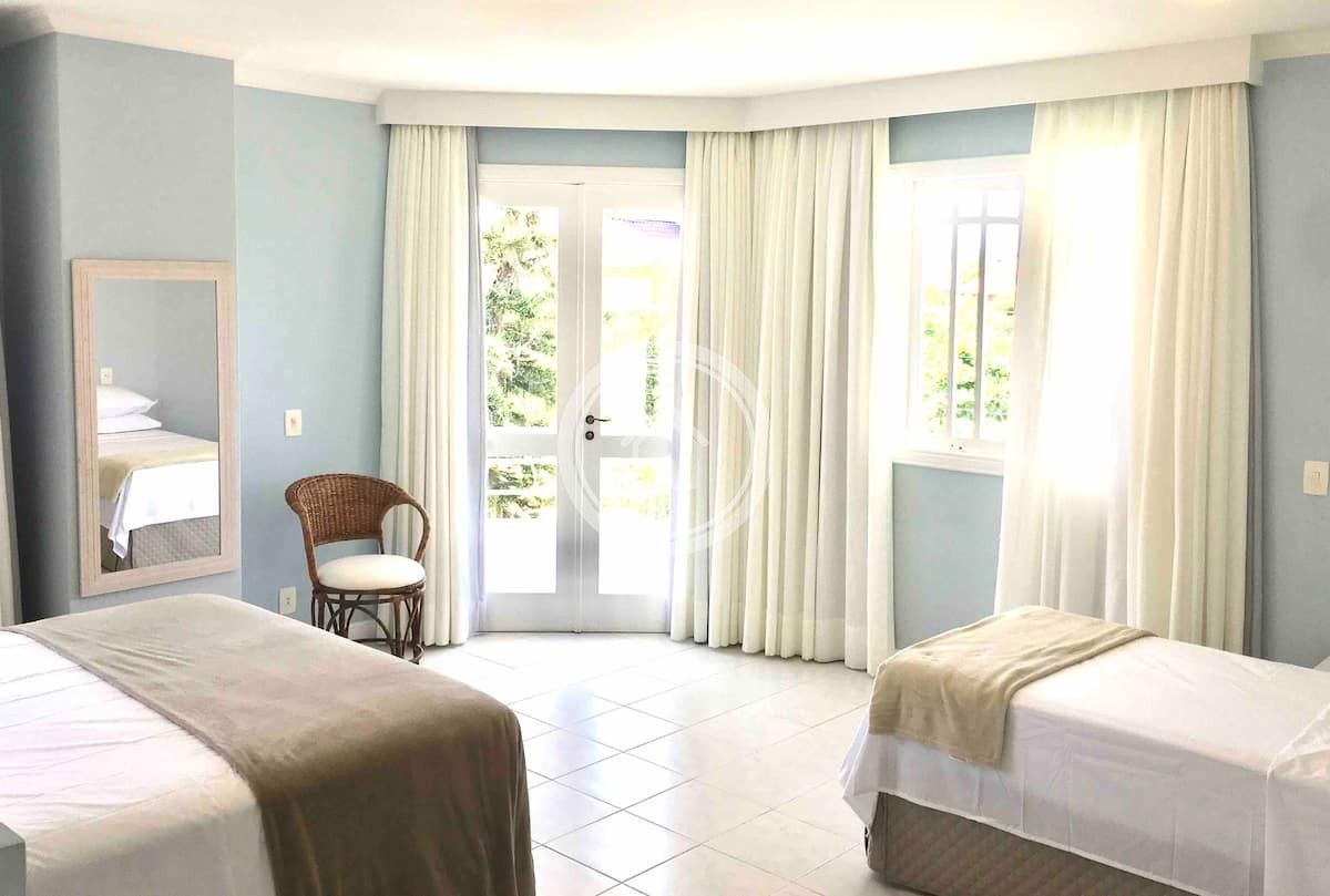 A residencia esta equipada com duas geladeiras duas portas, dois fogões, microndas, lava-louças, lava roupas e secadora, 7 Ar condicionados, cafeteira, chaleira eletrica, torradeira, liquidificador, alarme.despensa.