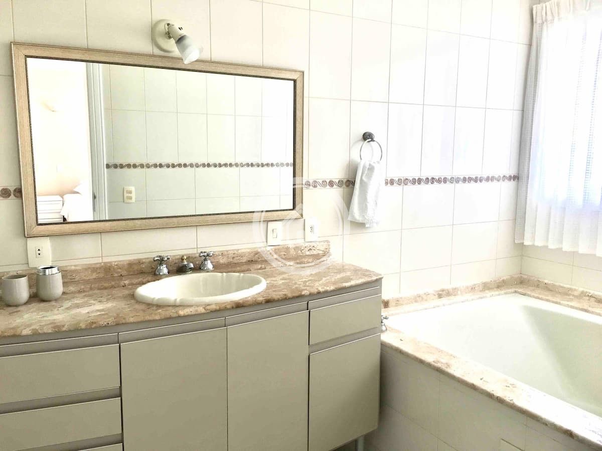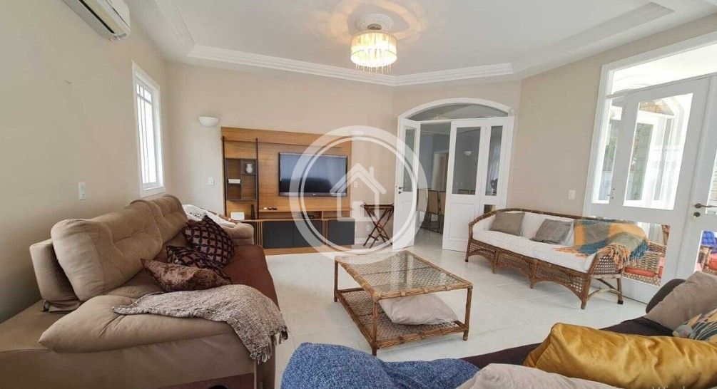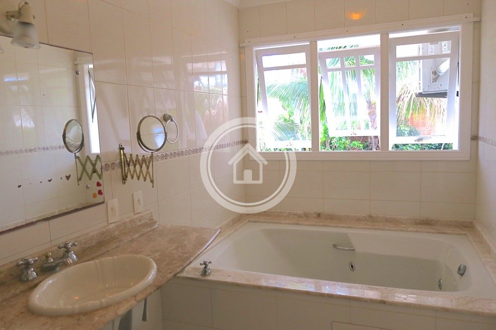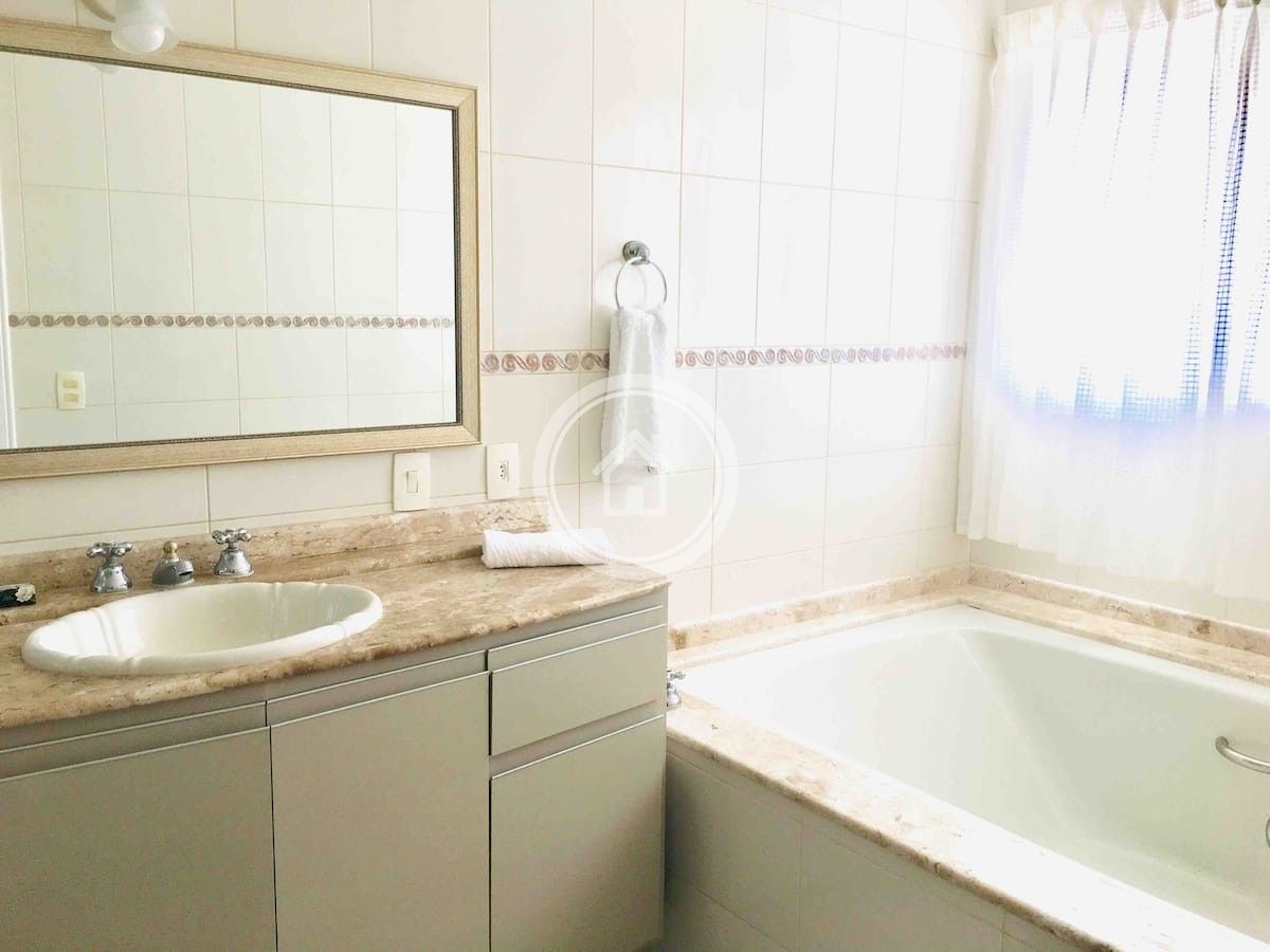 A residencia esta equipada com duas geladeiras duas portas, dois fogões, microndas, lava-louças, lava roupas e secadora, 7 Ar condicionados, cafeteira, chaleira eletrica, torradeira, liquidificador, alarme.despensa.