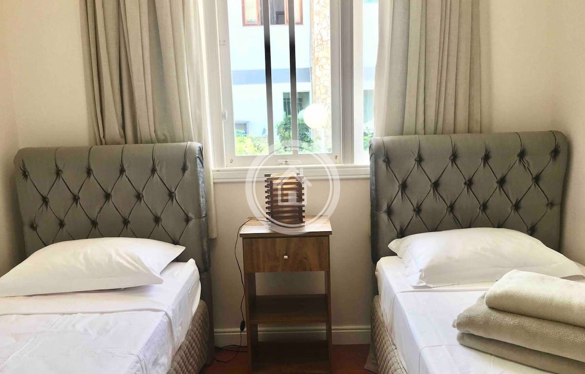 1 suíte master com hidro, cama Queen e uma de solteiro