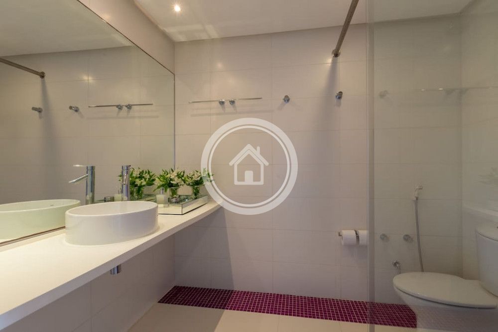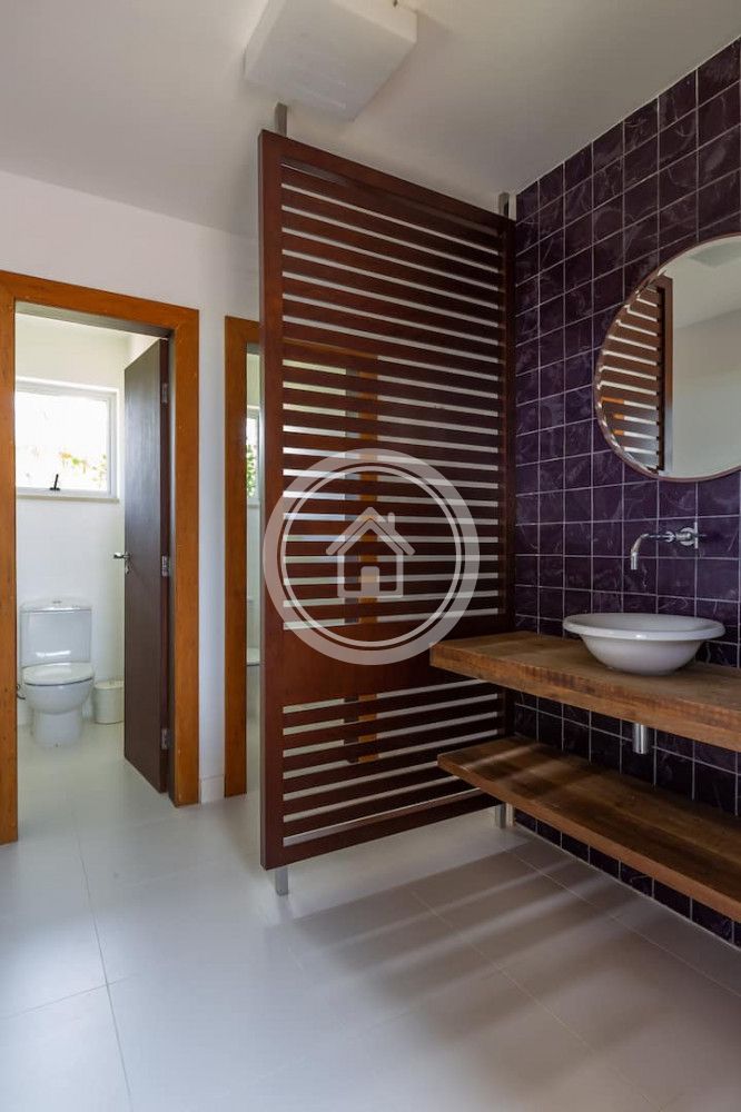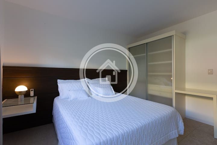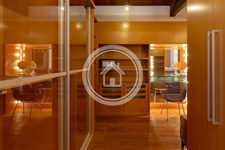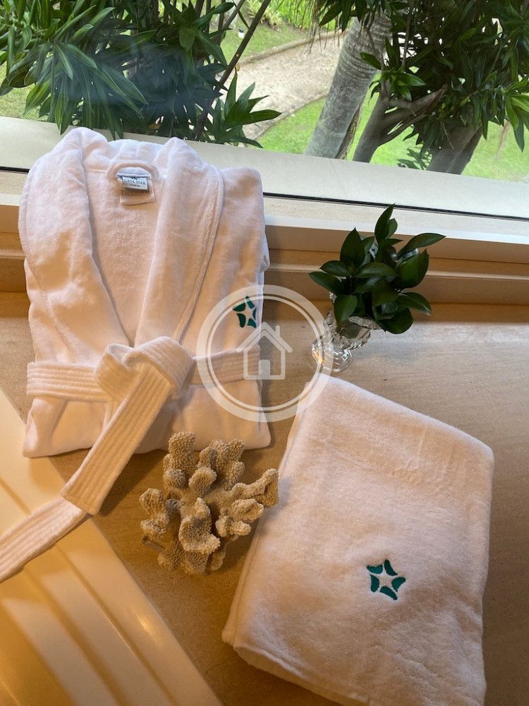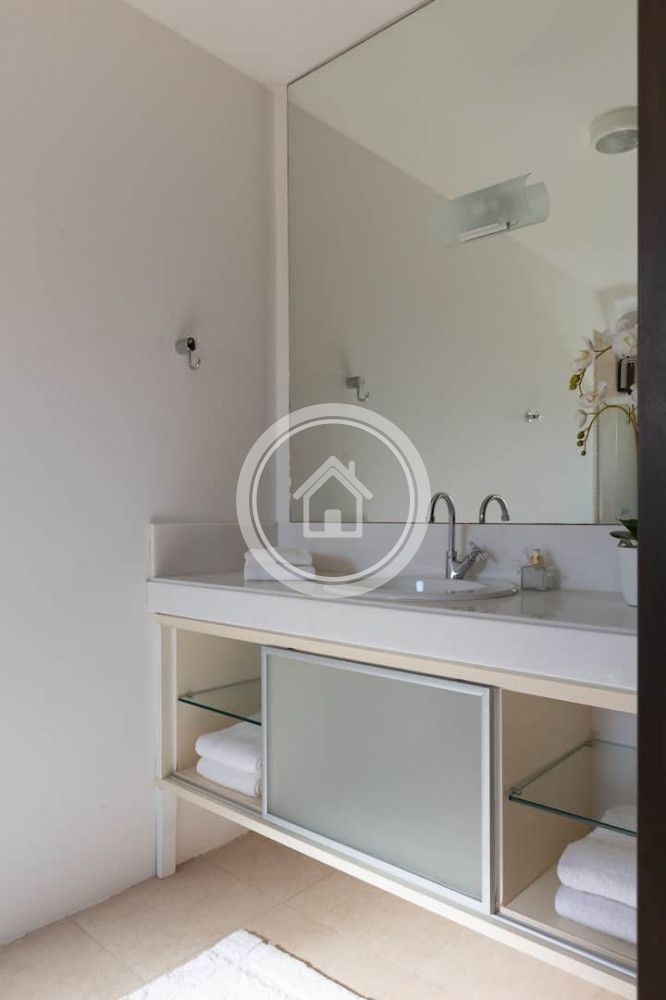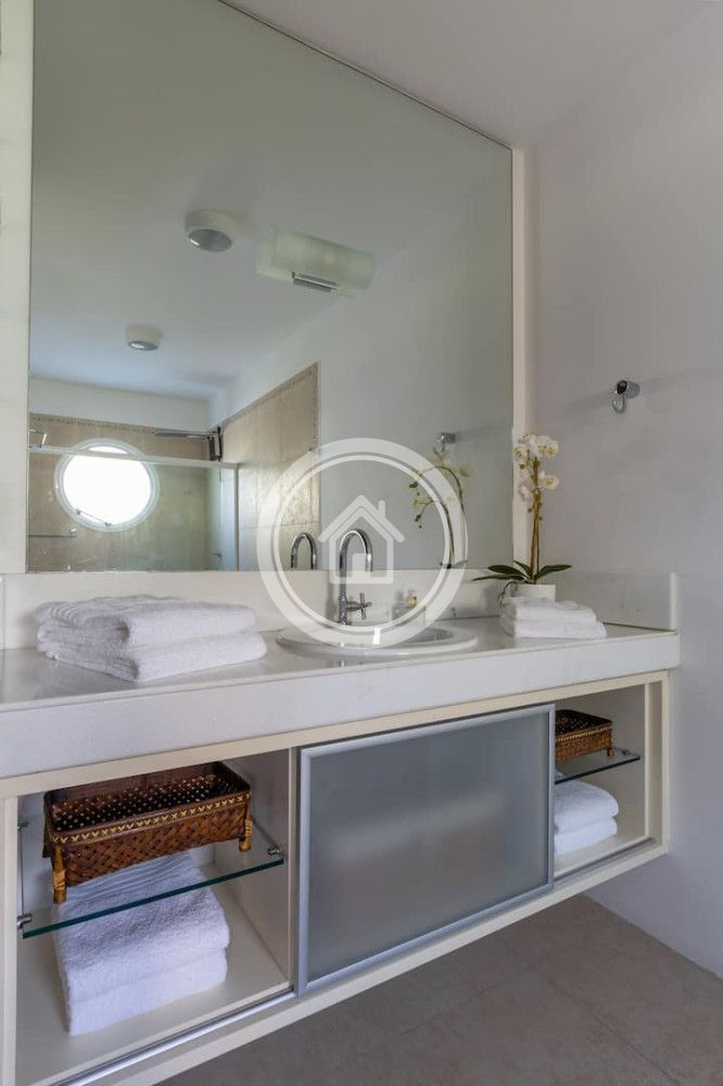 - 01 Suite Master na casa principal, com banheira e ducha dupla, cama king sob medida (2,00m x 2,30m), closet, varanda com vista para o mar, chaise, lareira, spa e ampla bancada com duas pias