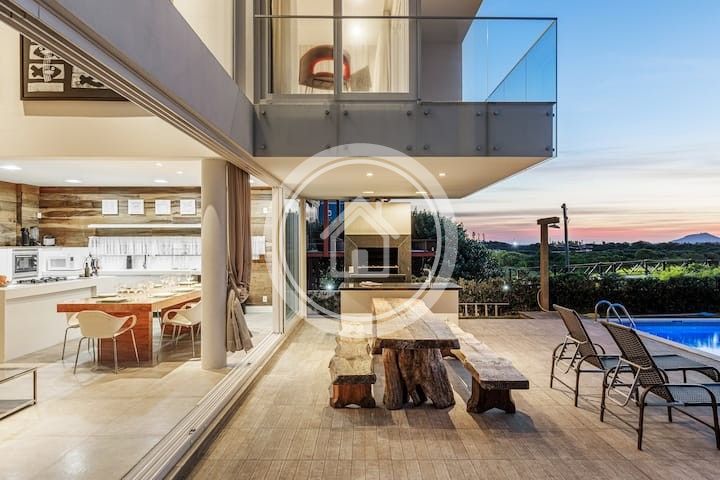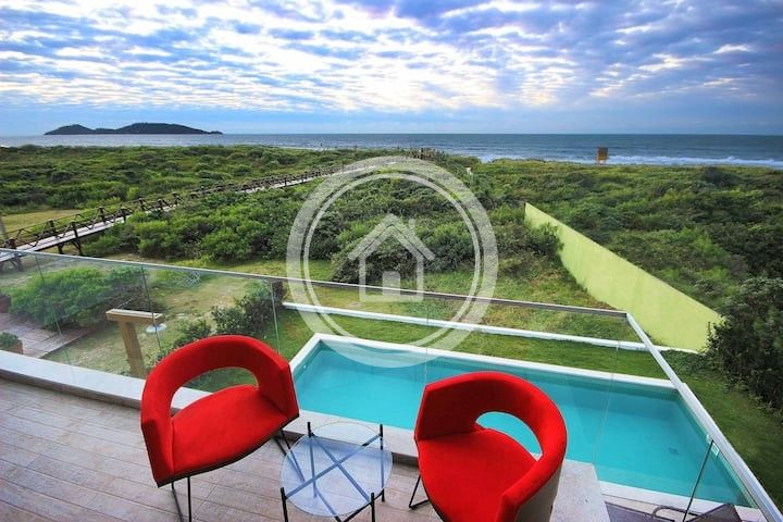 Casa deslumbrante ALTO PADRÃO no CAMPECHE - à beira-mar com piscina, 4 quartos, todos com banheiro privativo e vista para o mar, área para churrasco e acesso privado à idílica praia de Campeche.