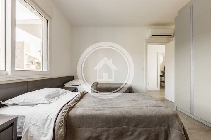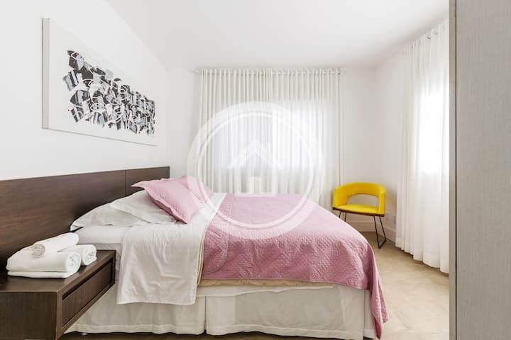Cozinha totalmente equipada, toalhas, lençóis, guarda-sóis e cadeiras de praia, WIFI, TV cabel, tela Led 55".