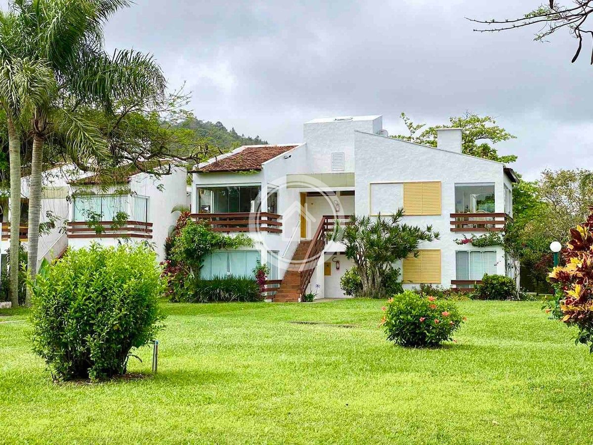 O melhor apto do condomínio! Condomínio c/saída direta para praia calma e semi-privativa. 2 dorms (1 suíte), 2 banhos (chuveiro elétrico). Sacada integrada, vista para o mar. AC nos quartos e sala. Wi-Fi, smart tv na sala. Condomínio com área verde incrível, piscina linda, deck com vista para a praia de Jurerê, quadra de tênis. Durante a temporada (dezembro a meio de março) limpeza diária com camareira. Restaurante junto à piscina (só no verão). 1 vaga rotativa. A 10 min do centro de Jurerê.
