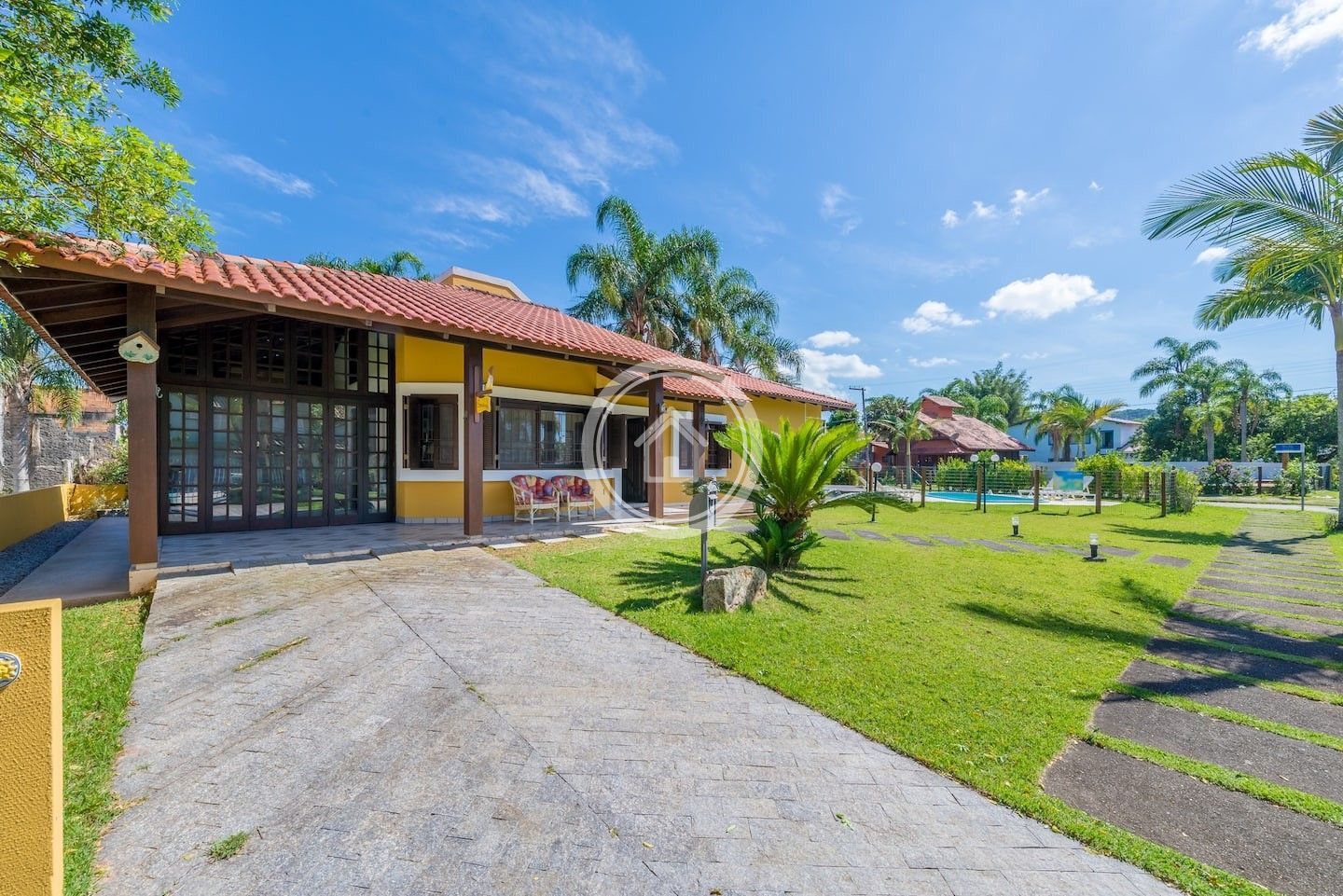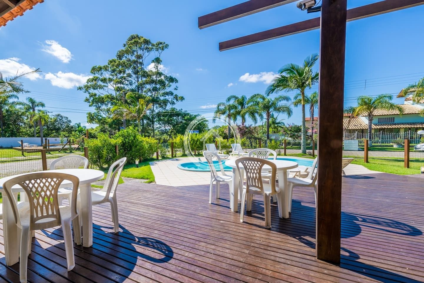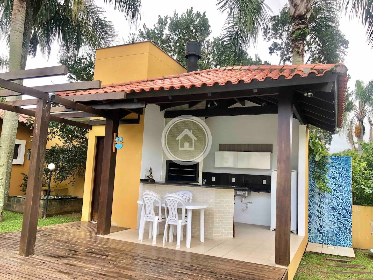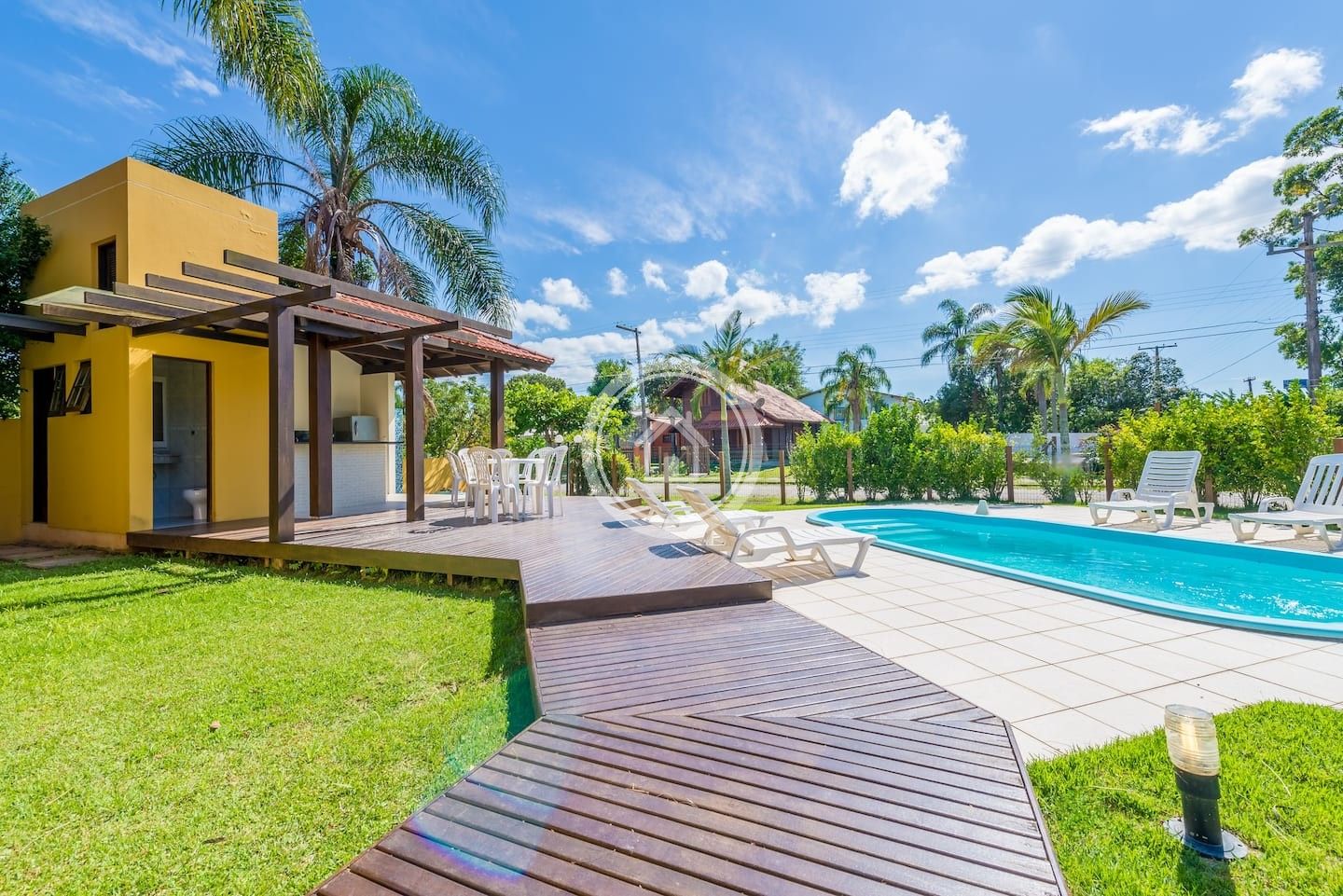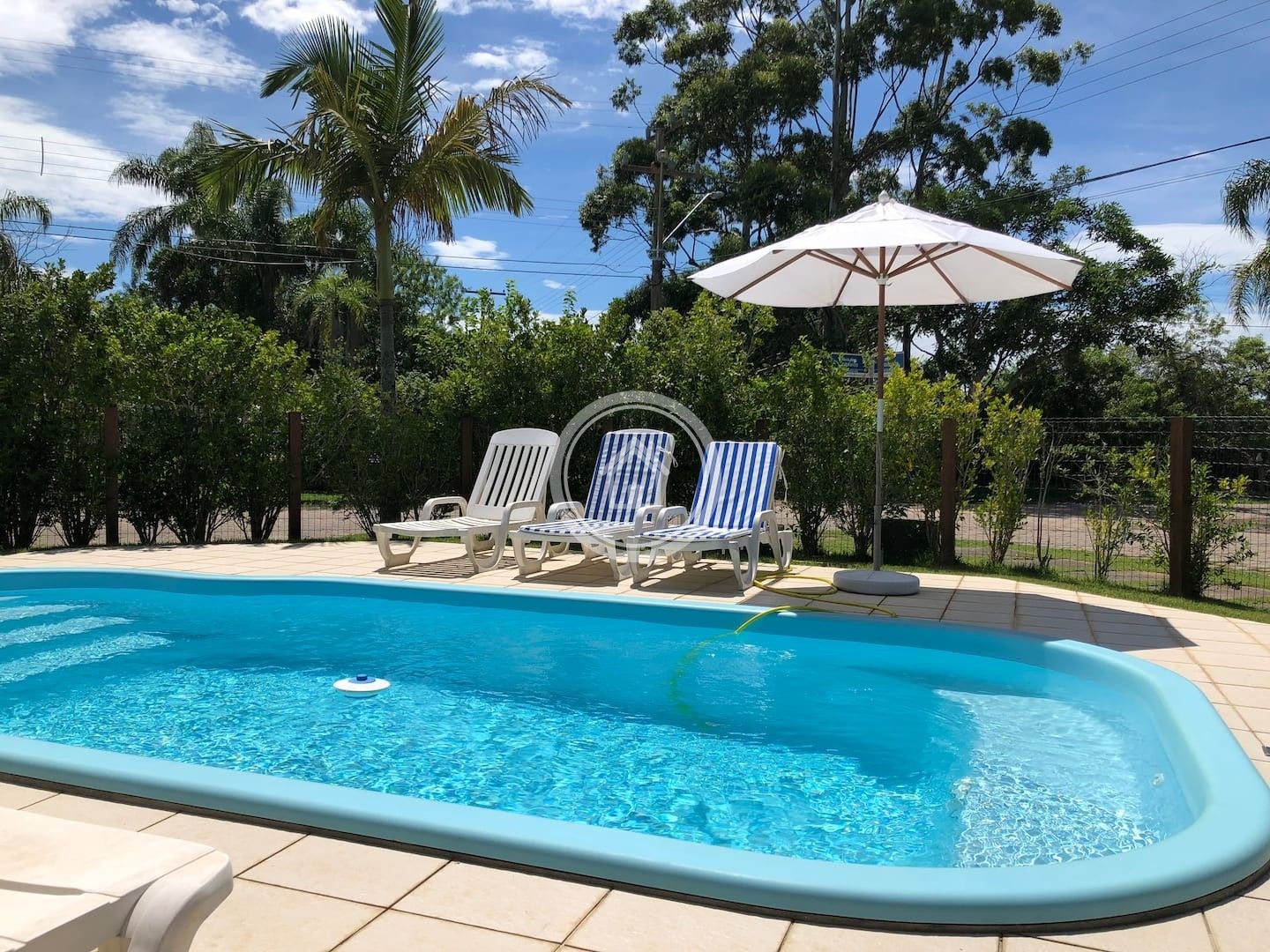 Possui piscina privativa com espreguiçadeiras, jardim e churrasqueira interna e externa.