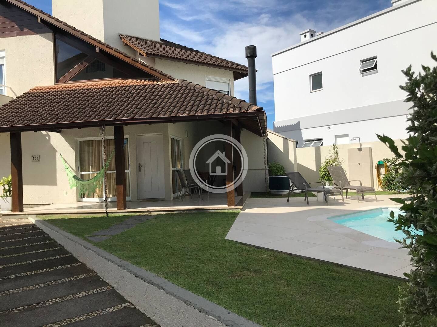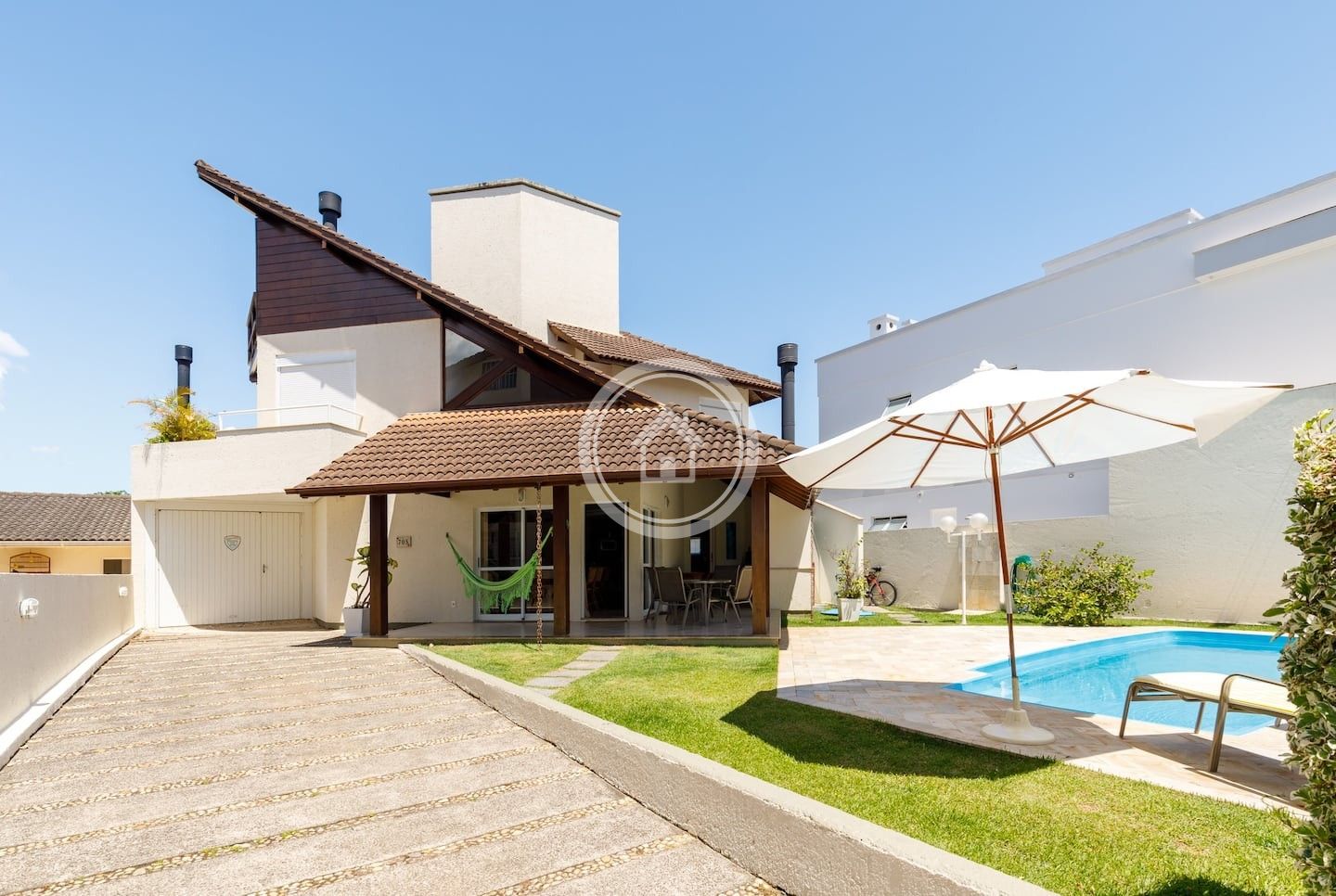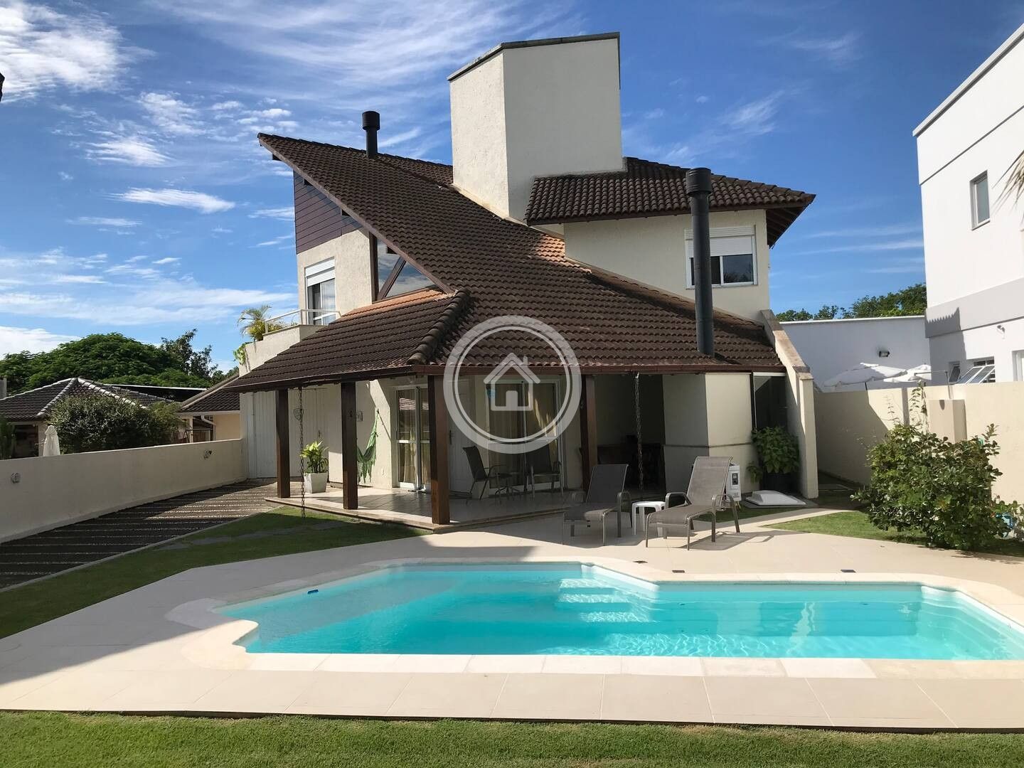 Casa muito confortável, com piscina aquecida 28/29 graus (inverno e verão) e lareira para o inverno, ambiente completo para lazer e convívio com a família e amigos. Localizada a poucos minutos (7 a 10 min de caminhada) de uma praia limpa e bem tranquila.
