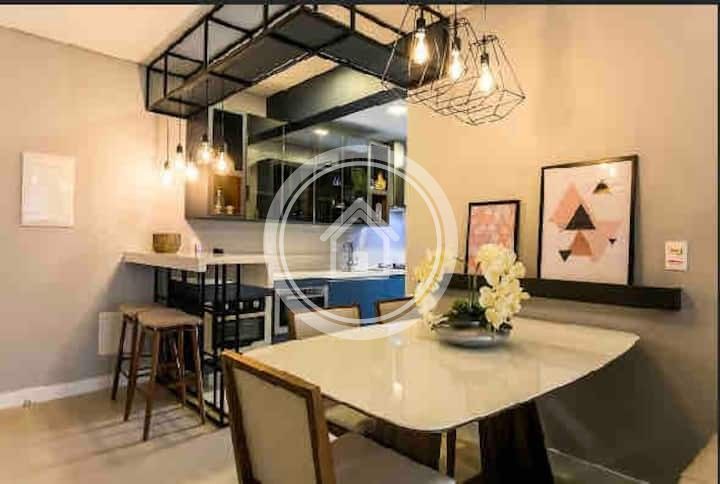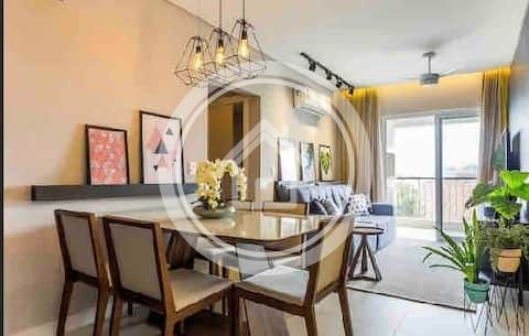 Apto completo , 2 suites , lavabo, sala de jantar e estar , cozinha , area de serviço , varanda c churrasqueira, 2 tvs , armarios , ar condicionado nos qtos e sala, forno elétrico , microondas , lava/seca , tv a cabo , wifi , box nos banheiros , aquecimento central , telas antimosquito nas janelas, cadeiras de praia e guarda sol, 2 vagas de garagem , edificio c piscina na cobertura, a 40 mts da praia .