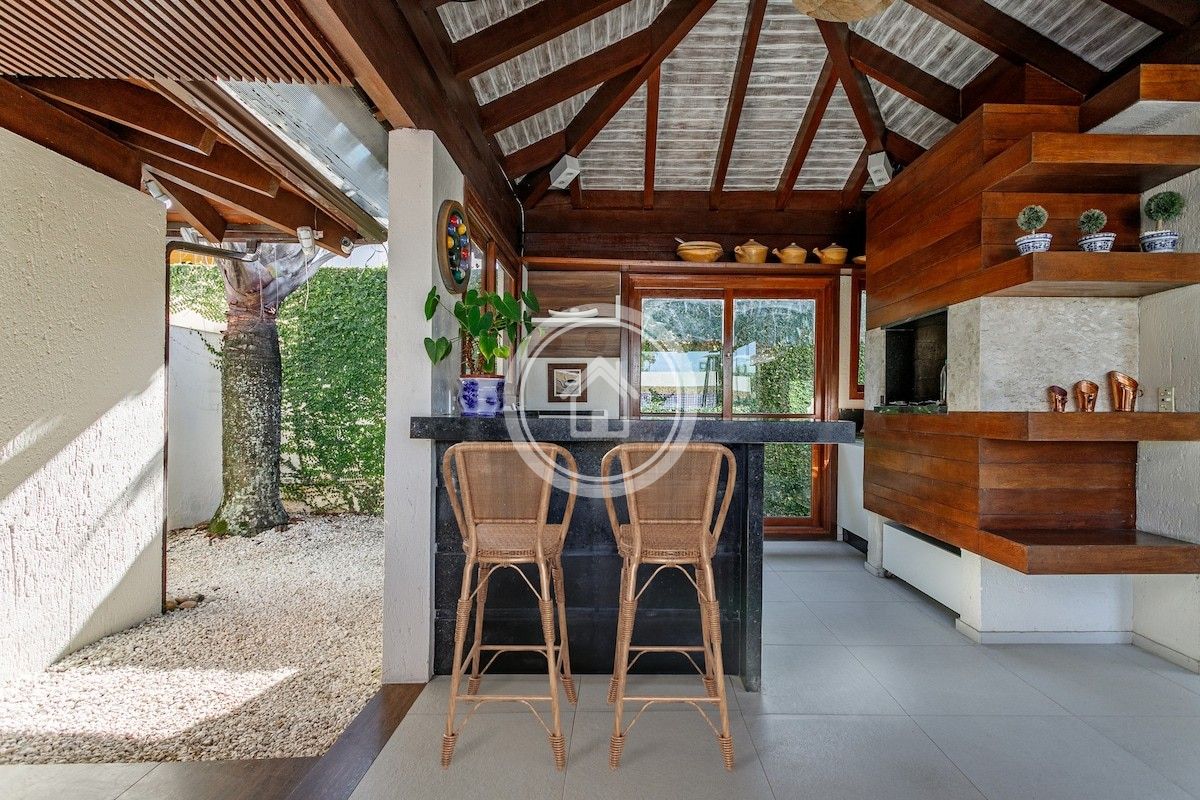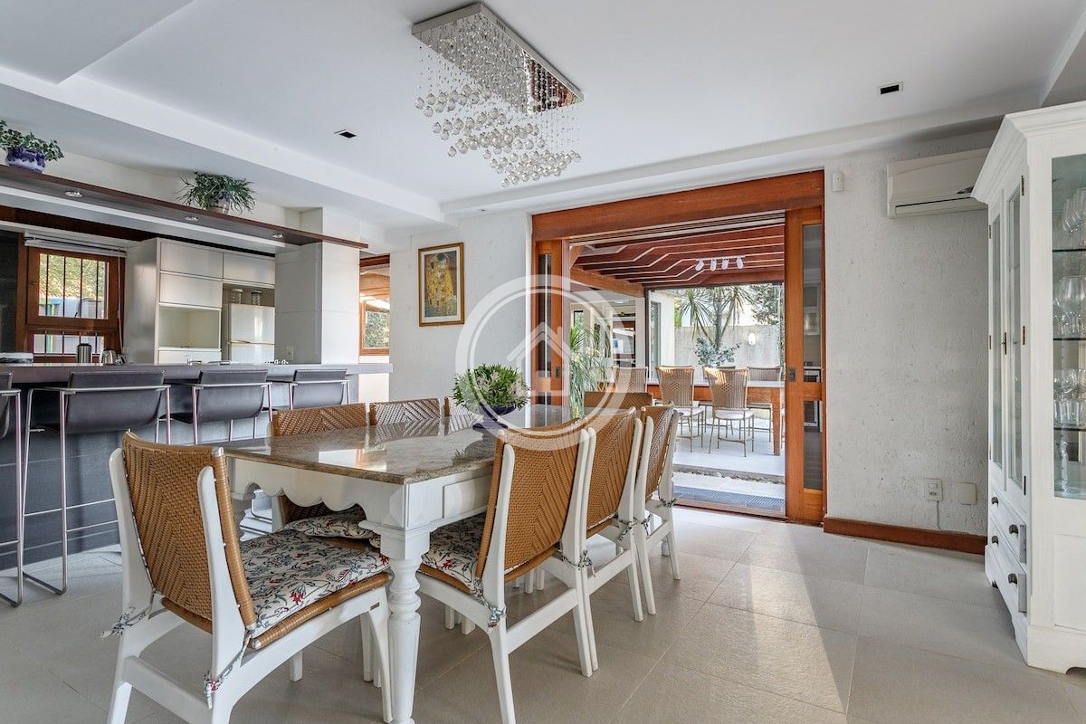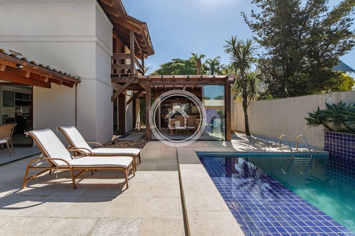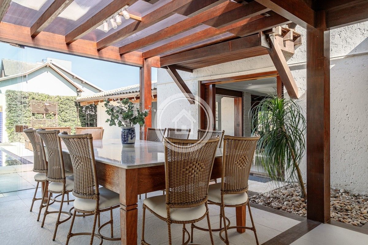 Possui cozinha integrada a sala de jantar e estar, ambas com vista da piscina e da área externa.