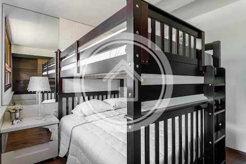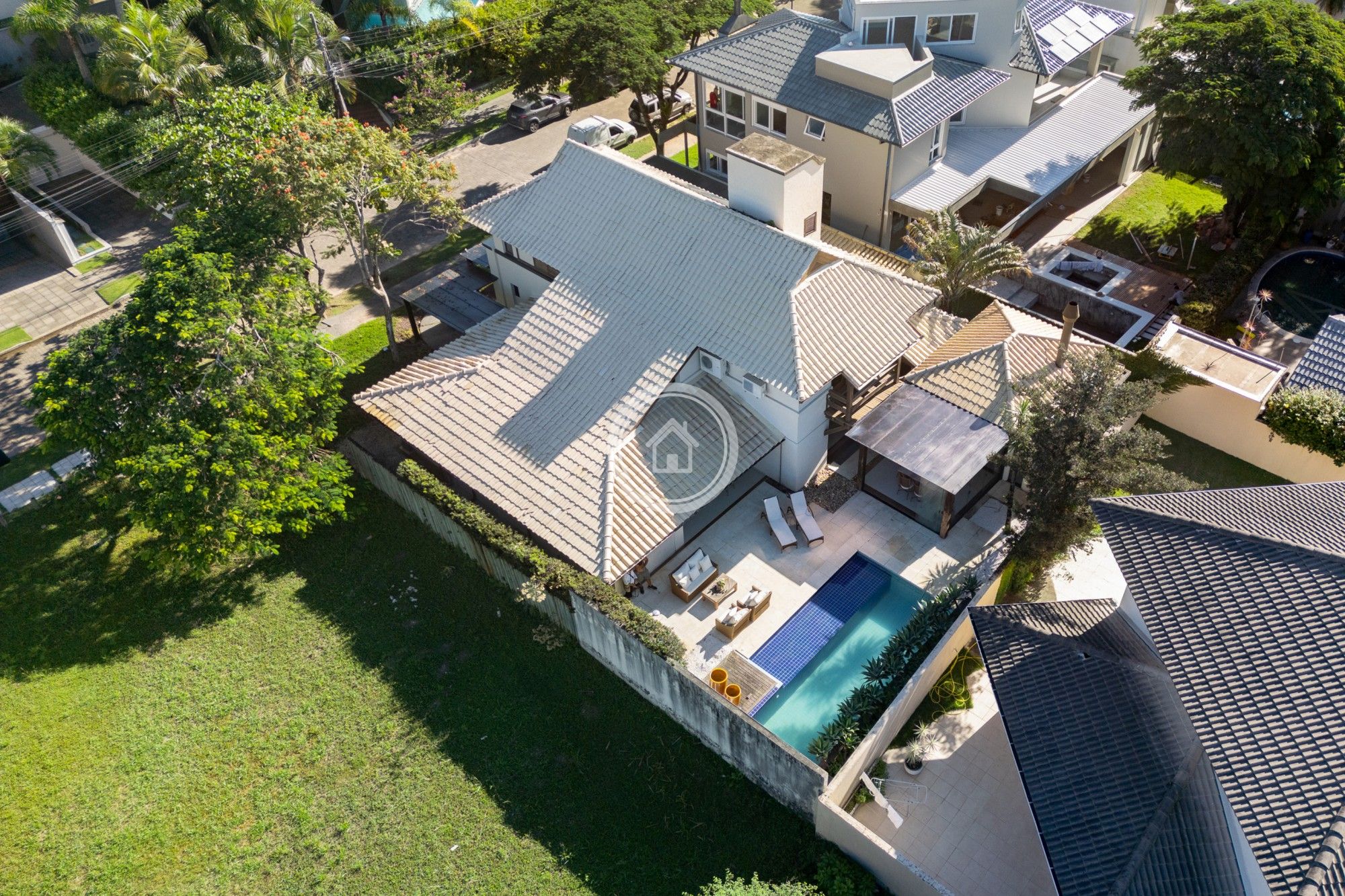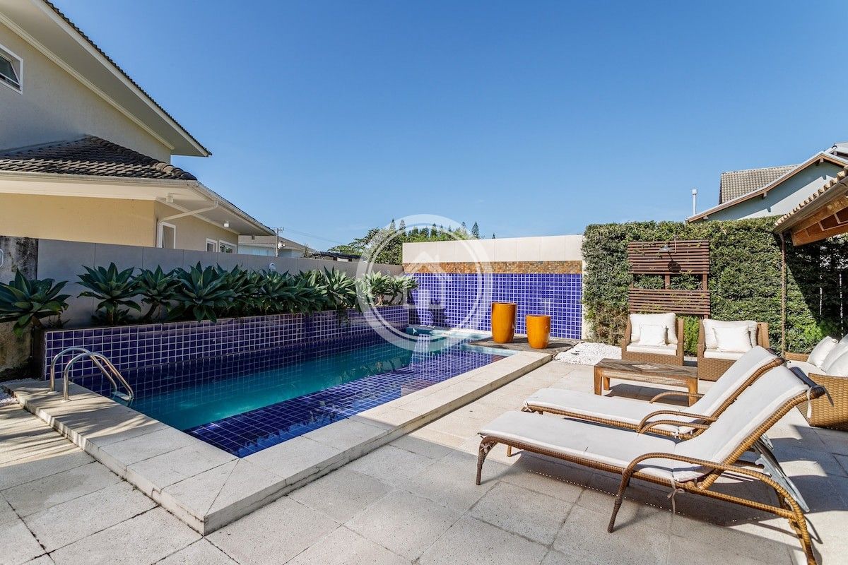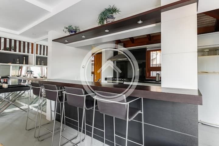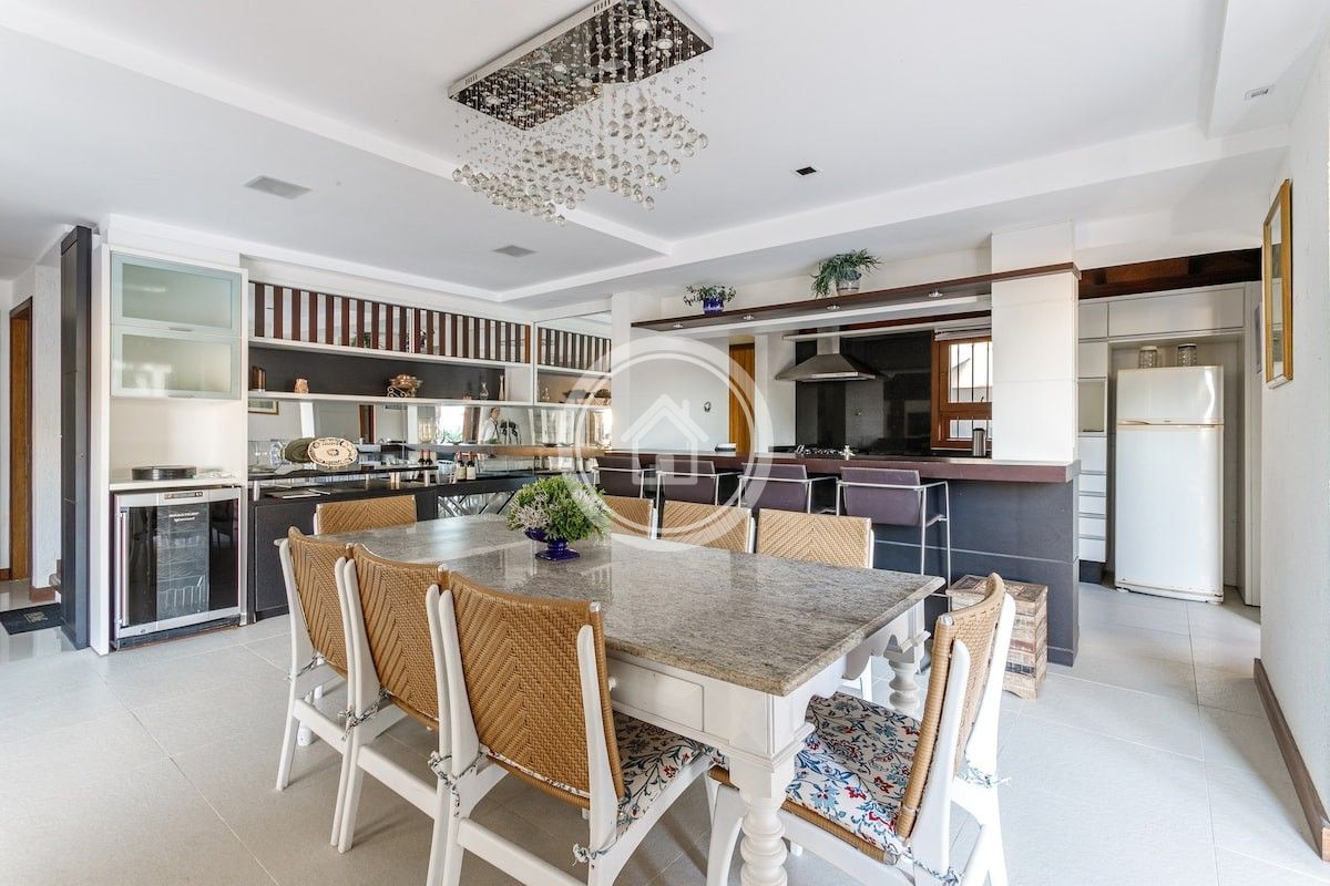 Possui cozinha integrada a sala de jantar e estar, ambas com vista da piscina e da área externa.