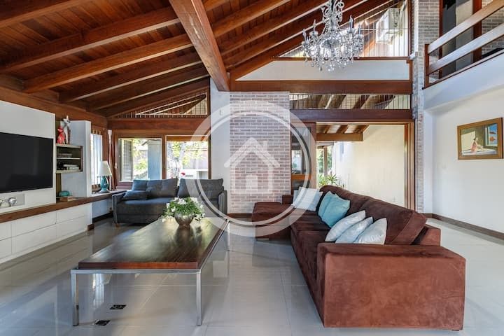 Mansão Yahweh 2 em Jurerê Internacional com capacidade para 21 hóspedes, 7 quartos sendo 6 suítes, piscina, ampla área gourmet, a apenas 2 minutos de caminhada da famosa e recentemente alargada praia.