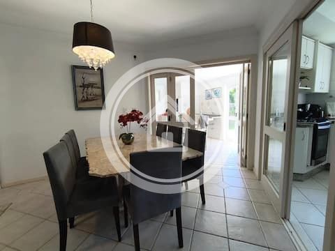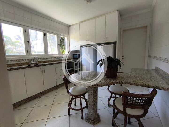 Esta casa localiza-se na praia de Jurere Internacional a 200 metros do mar. Possui um espaço amplo e arejado com: churrasqueira, piscina, 3 grandes suítes com ar-condicionado , um quarto adicional (sem banheiro) e garagem para 4 carros. A casa acomoda 8 pessoas com conforto, porem é possível expandir.