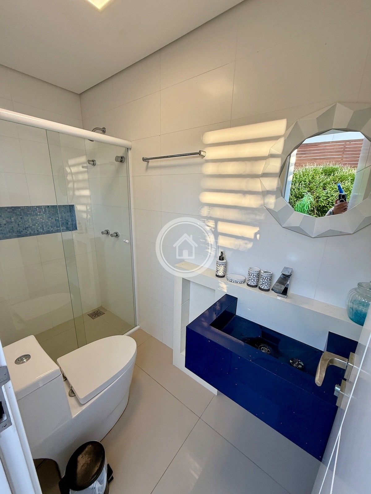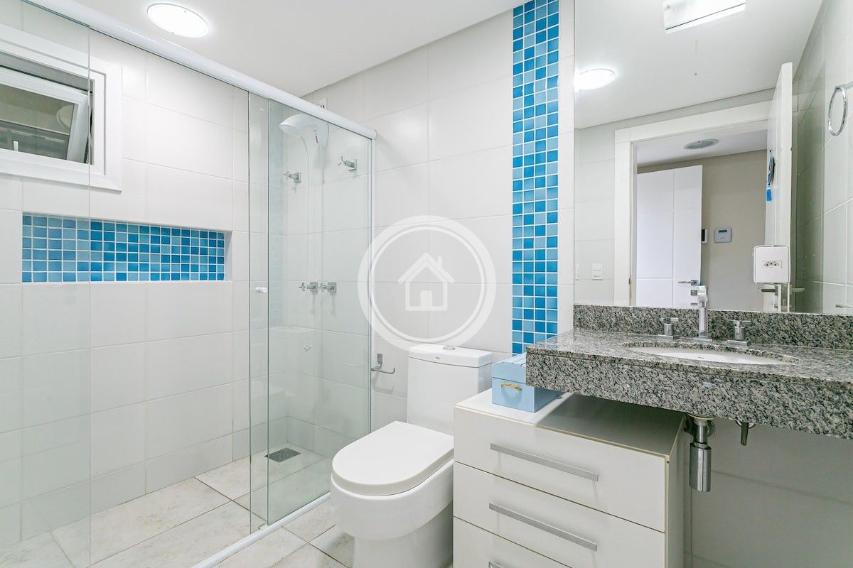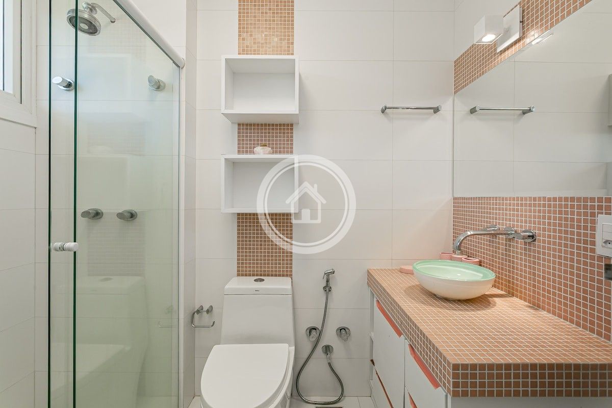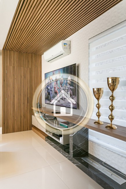 •7 banheiros, um em cada suíte, um para a piscina, o social e outro para a academia