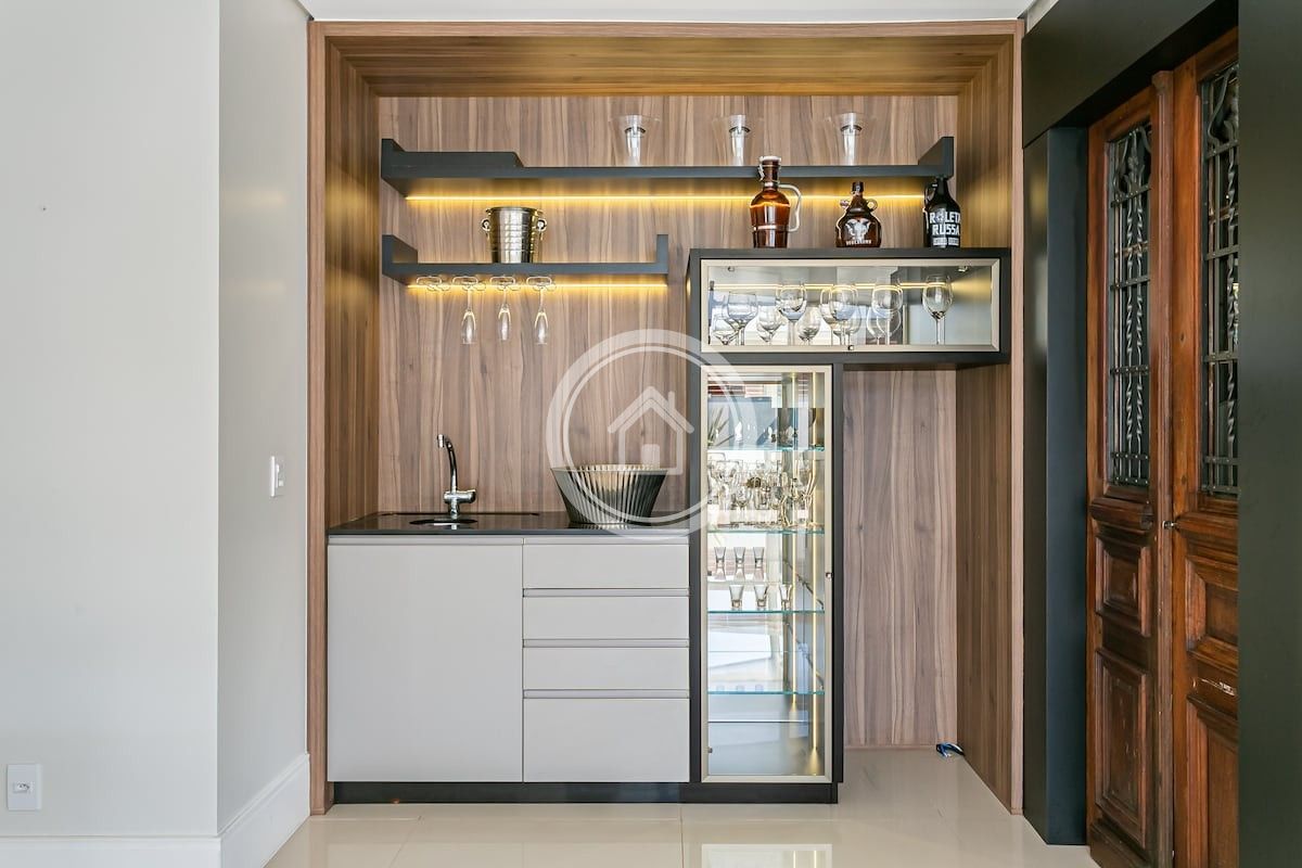 •Bar com bancada e pia para preparo de drinks
