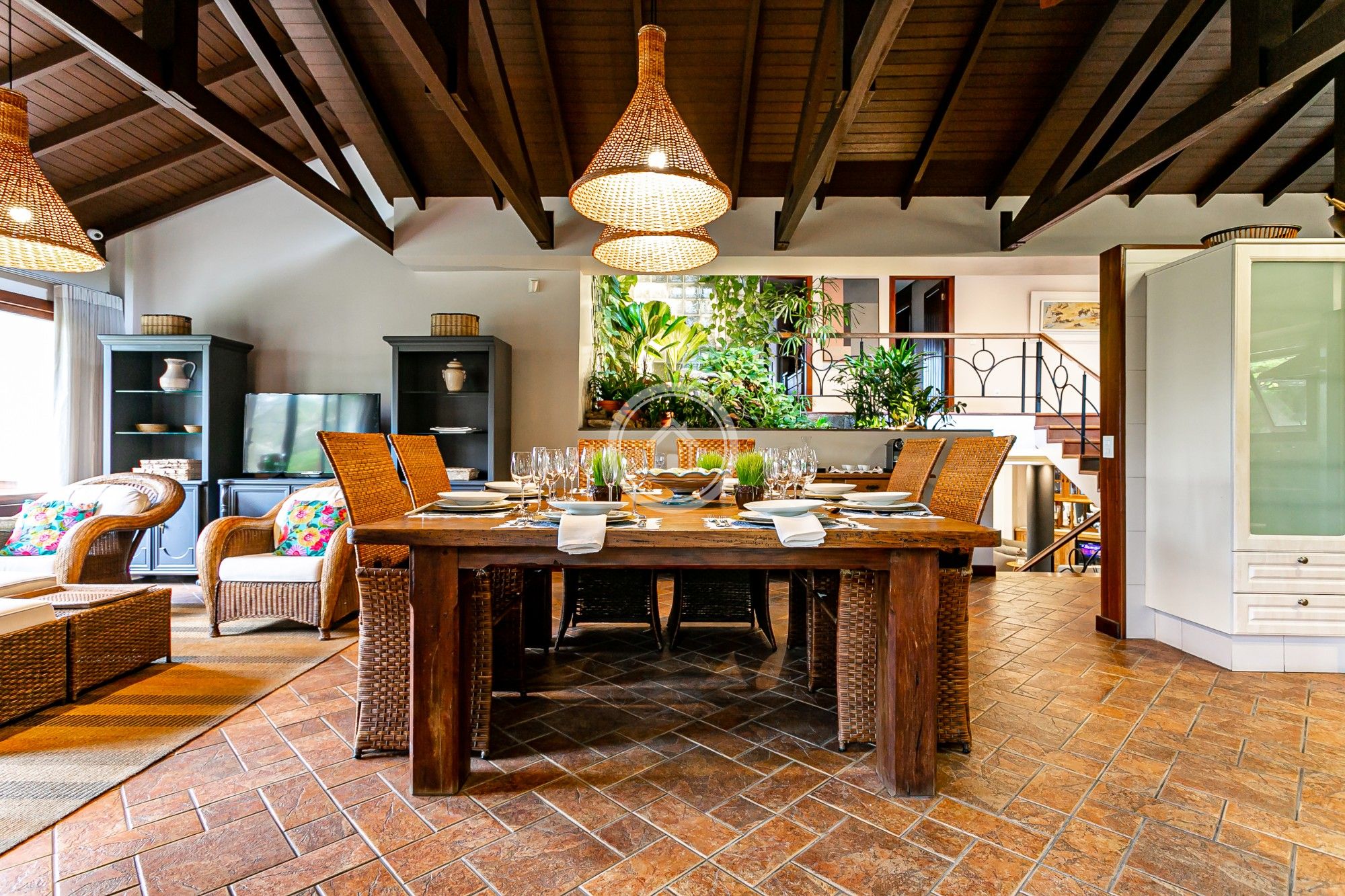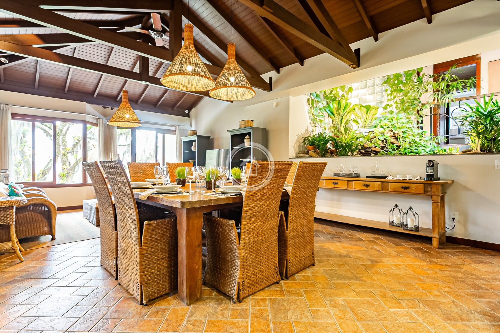 Compõem a casa ainda, um living, entrada personalizada para chegada dos hóspedes, sala ampla de jantar e uma gama de serviços extras caso desejem mais conforto e comodidade.