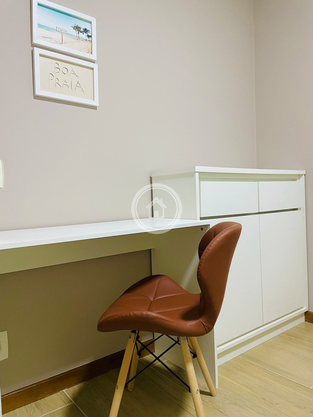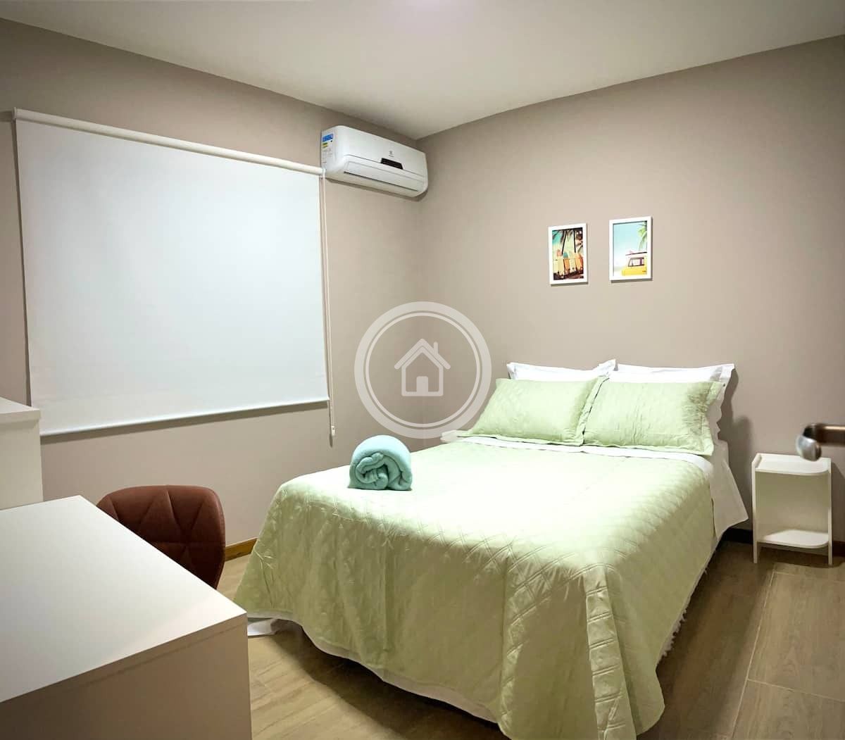 O segundo quarto possui uma cama de casal com colchão ortobom de molas ensacadas, travesseiros macios, ar condicionado split, cômoda espaçosa para armazenar as roupas e uma escrivaninha própria para trabalhos de home office.