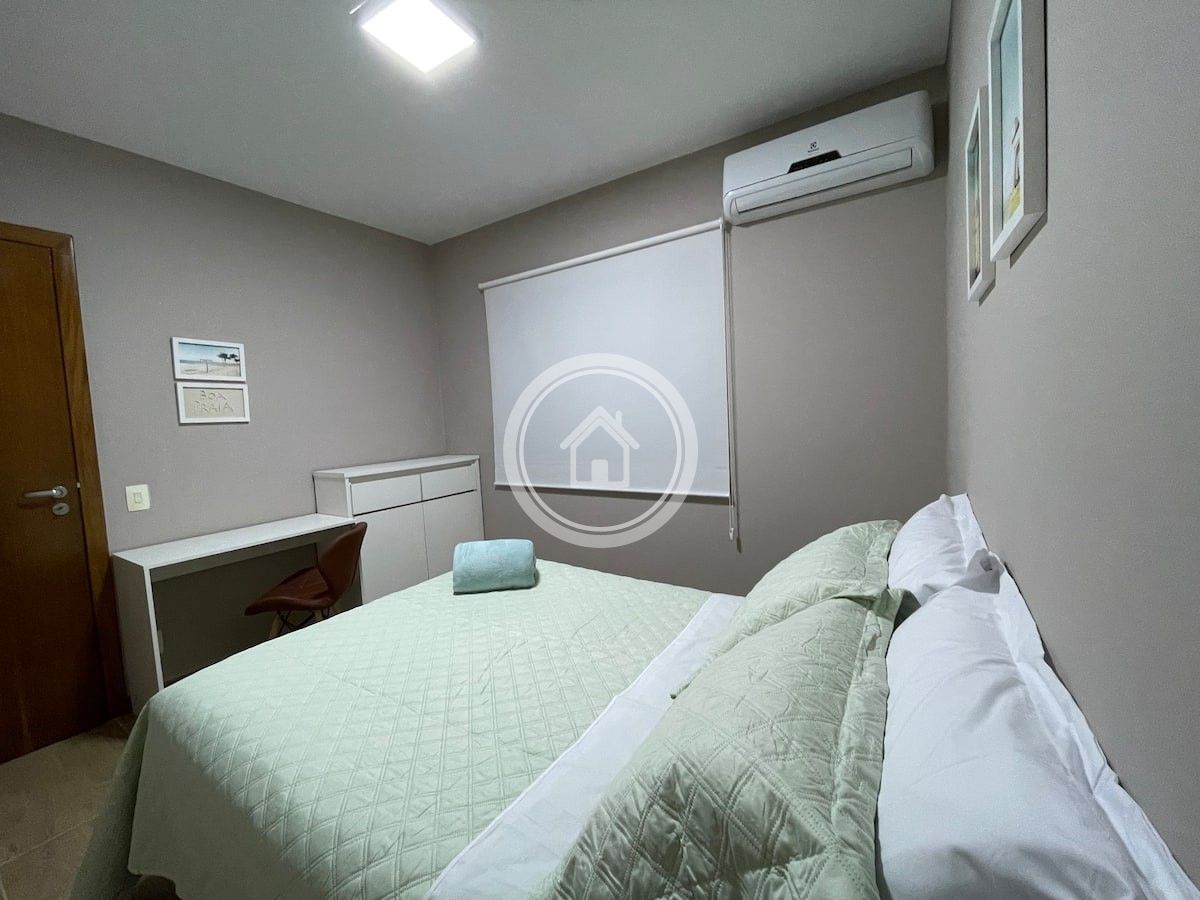 O quarto principal possui uma cama de casal com colchão ortobom D33, travesseiros macios, ar condicionado split, roupeiro duas portas com espelho.