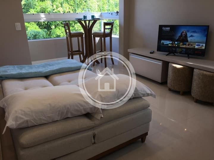 Apartamento de 45 m², novo e descolado. Com wi-fi, duas smart TVs, toalhas 100% algodão de fio penteado, lençois em percal 200 fios, ar condicionado split na sala e quarto. Ideal para receber até quatro pessoas.