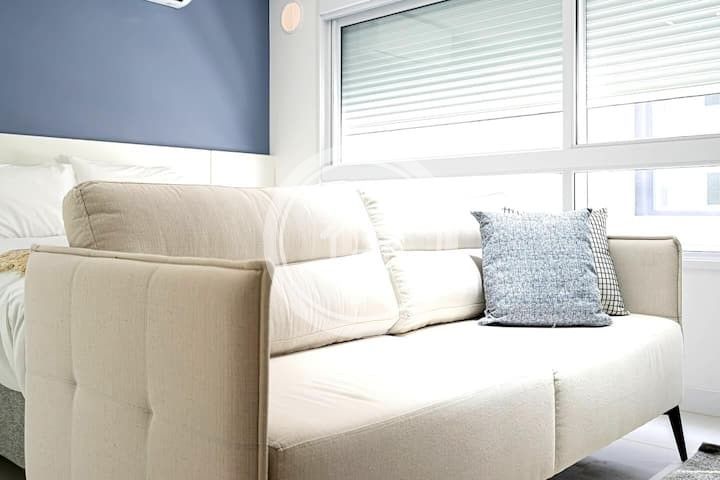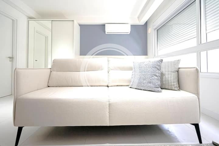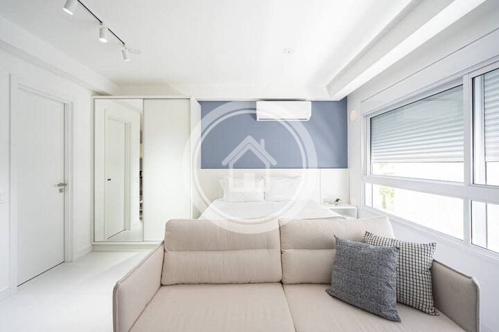 Relaxe neste novíssimo studio super confortável, funcional e há uma quadra do mar.