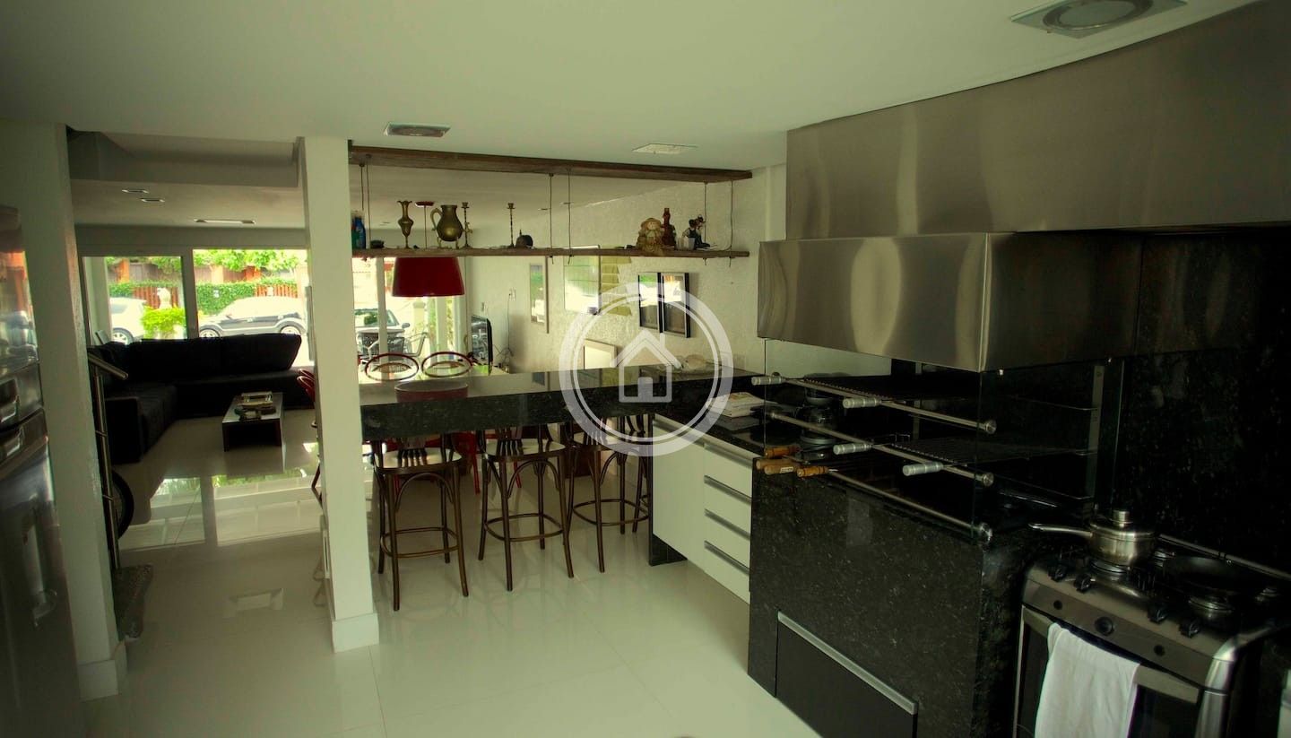 Casa de 3 andares moderna, com 6 suítes em condomínio na beira da praia de Jurerê. Casa equipada com 2 churrasqueiras, lavabo, e sala com cozinha americana ampla. Fica próximo a bares, restaurantes, farmácia, supermercado, sorveteria.