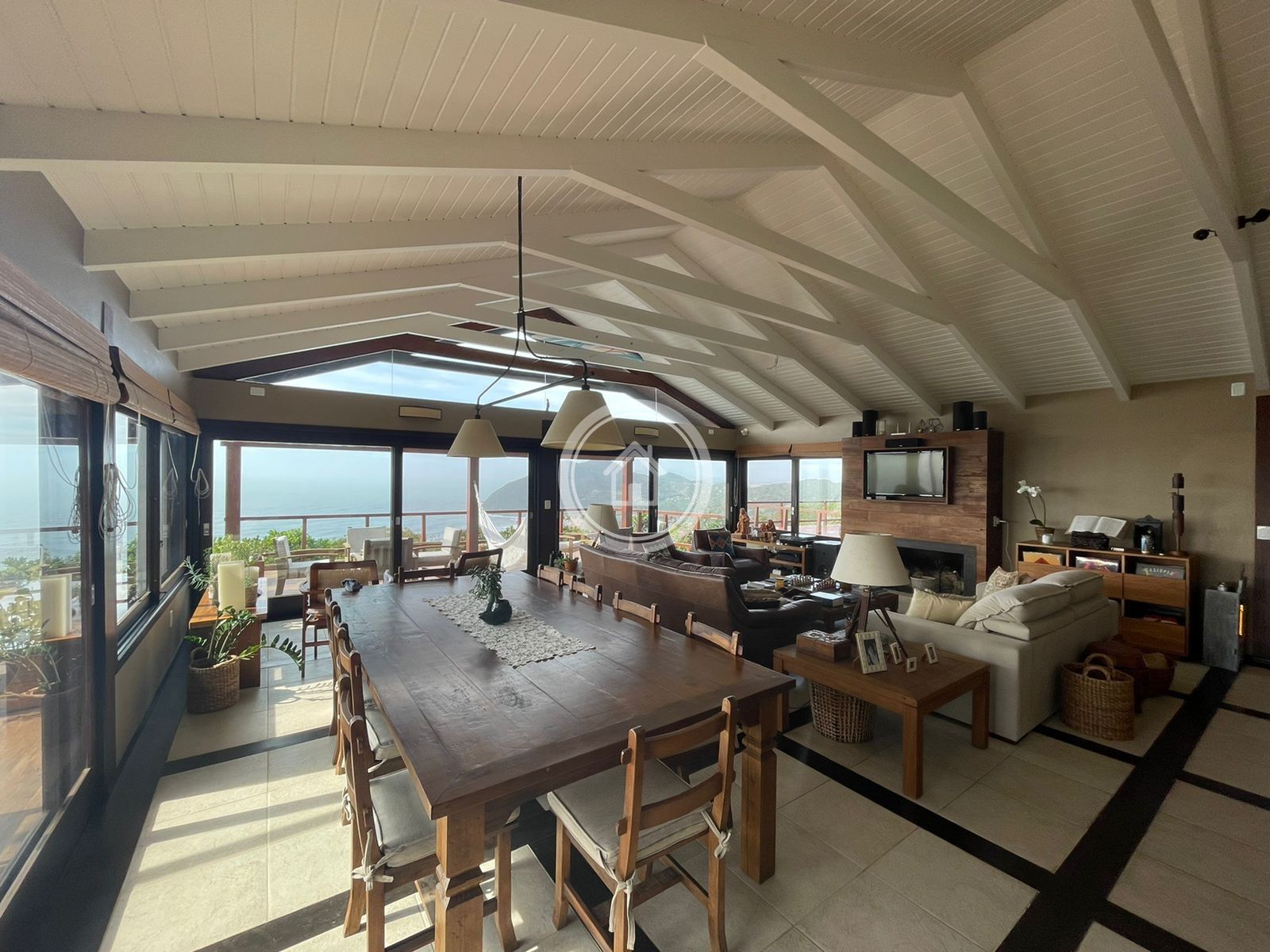 Área de estar integrada com smart tv de 70", mesa de sinuca profissional, sala de jantar com mesa para 12 lugares, churrasqueira, wi fi 220 mega.