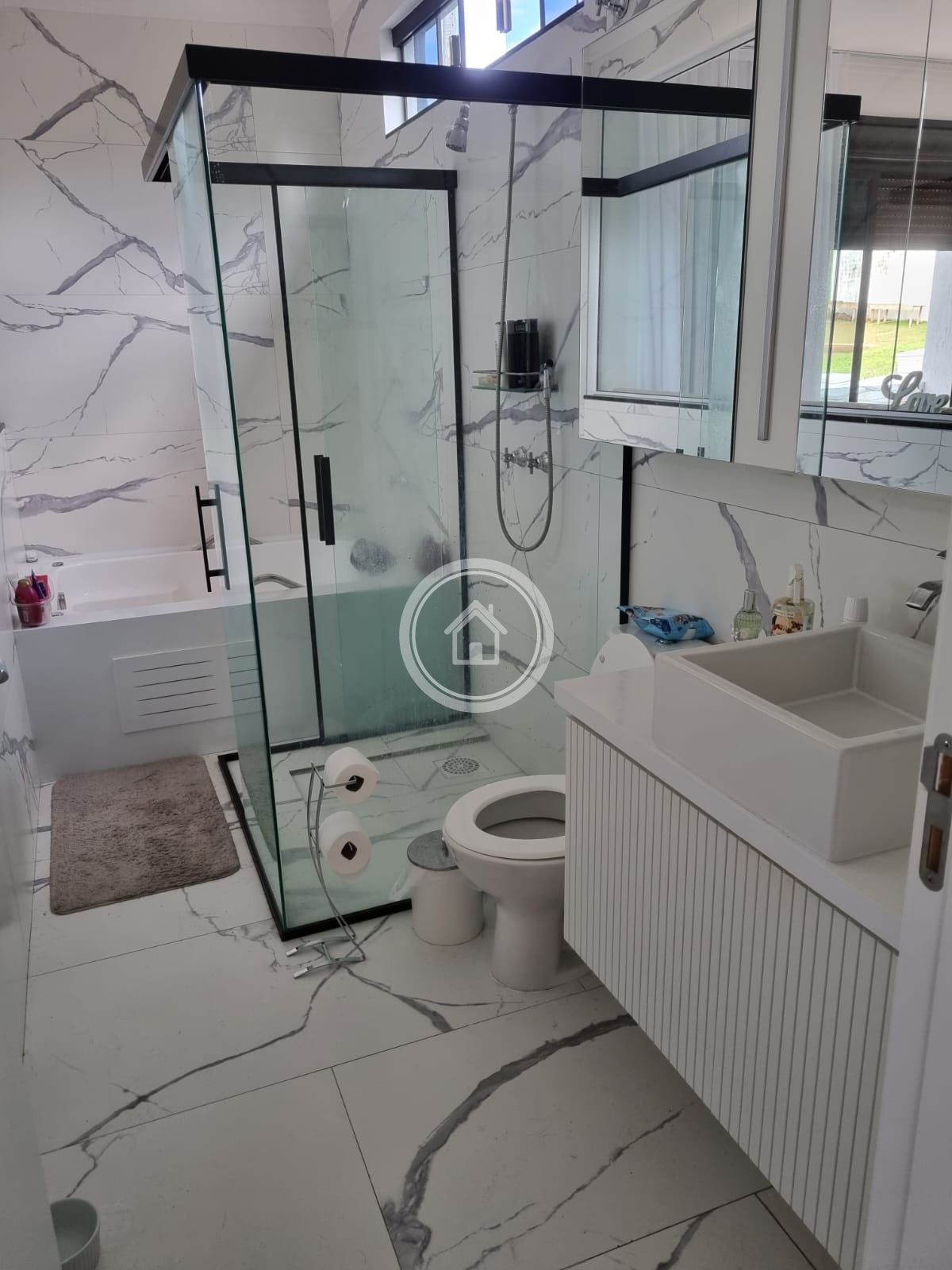 - 05 banheiros divididos em - 01 banheiro social (Lavabo), 01 banheiro suporte a piscina e gourmet. e banheiro das suítes.