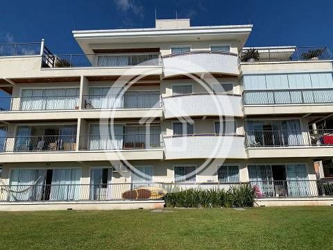 Prédio pé de areia, frente para o mar, na melhor parte da praia de Canasvieiras, com árvores na praia em frente o prédio. Prédio com elevador, Segurança 24 hs, com câmaras e alarmes monitorados por empresa de segurança. prédio com filtro de água na entrada, tendo todos apartamentos com água filtrada em todas as torneiras. Apartamento com uma suite e um quarto com banheiro, todos grandes e espaçosos, finamente mobiliado, tudo de primeira qualidade, com muitos armários e decoração de muito bom gosto. Ar condicionado quente/frio em todos ambientes. Garagem privativa e home box. Apartamento recém pintado, Terraço com janelas tipo Reike, com abertura total. Apartamento de frente para o mar, com vista privilegiada.