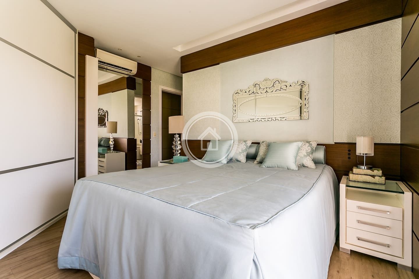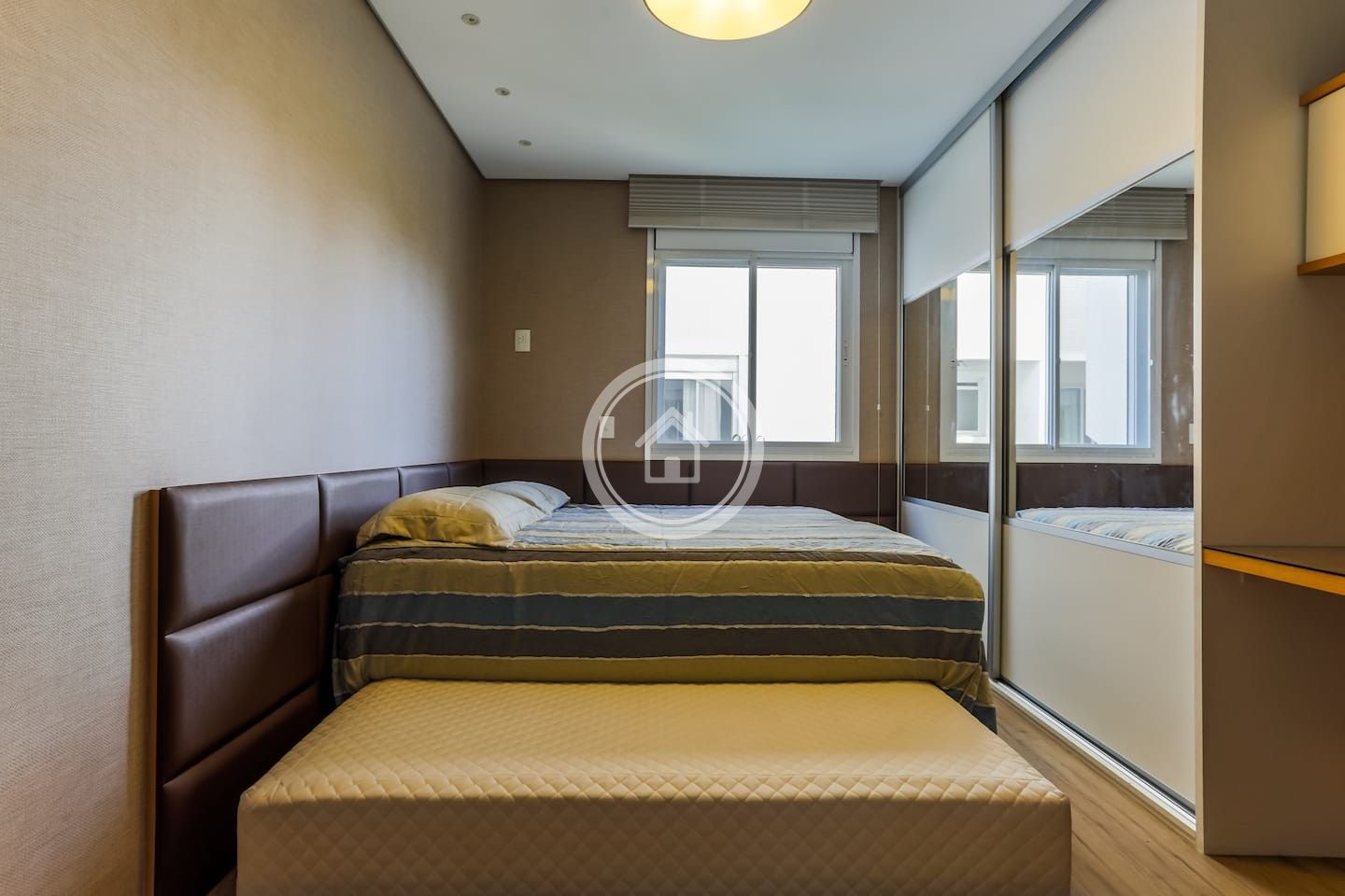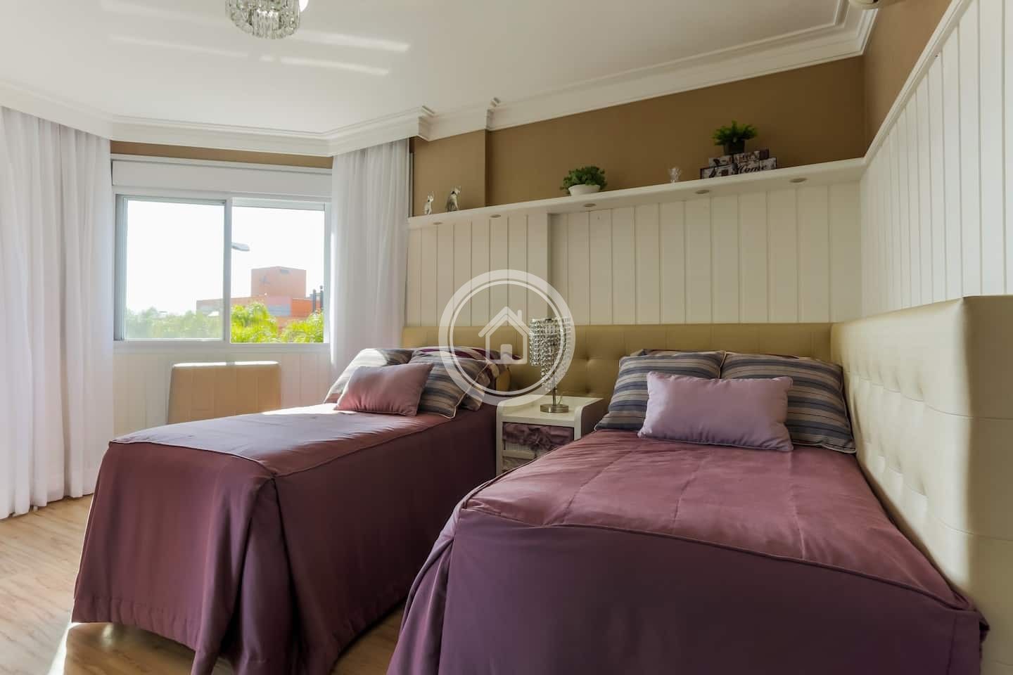 O apartamento possui, uma suíte master com 1 cama Queen , banheira e sacada+ uma suíte com 2 camas de solteiro ( que podem se transformar em King, com cama auxiliar + um quarto com 2 camas de solteiro (que podem se transformar em King, com cama auxiliar. O apto acomoda confortavelmente 8 pessoas.