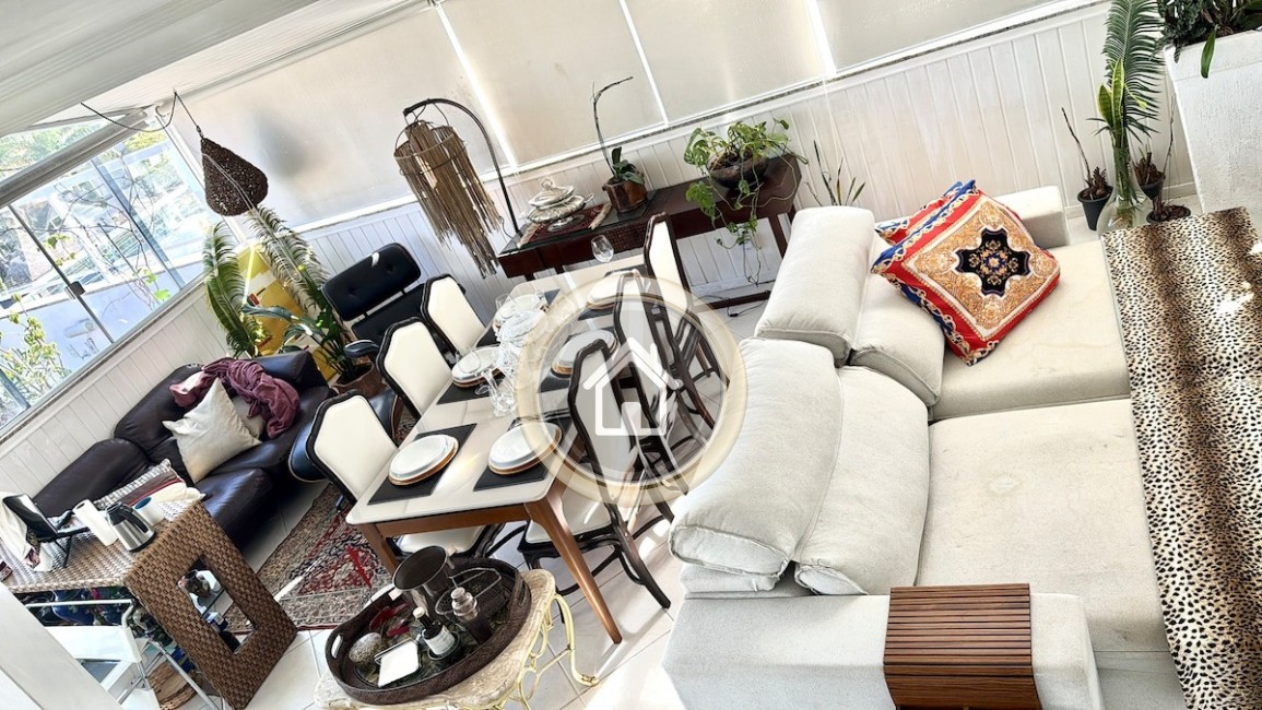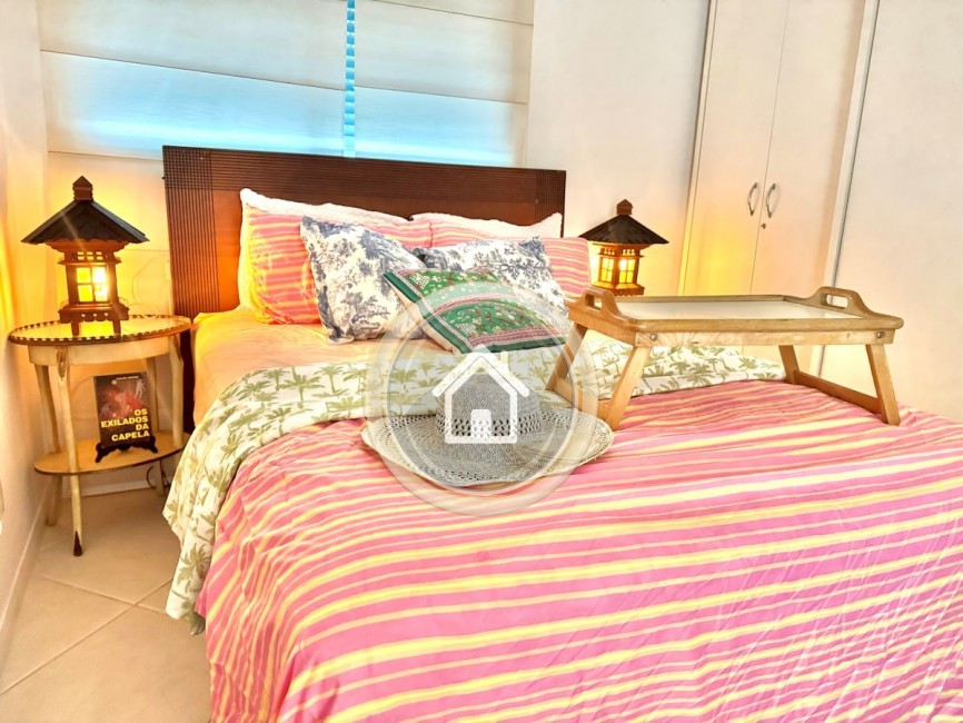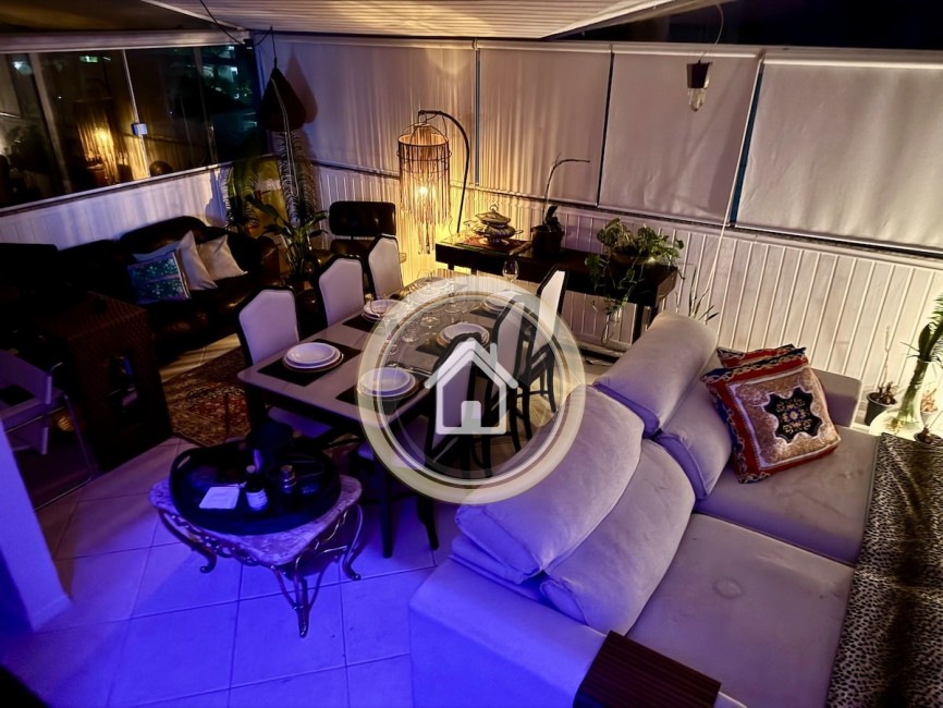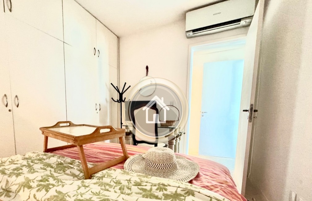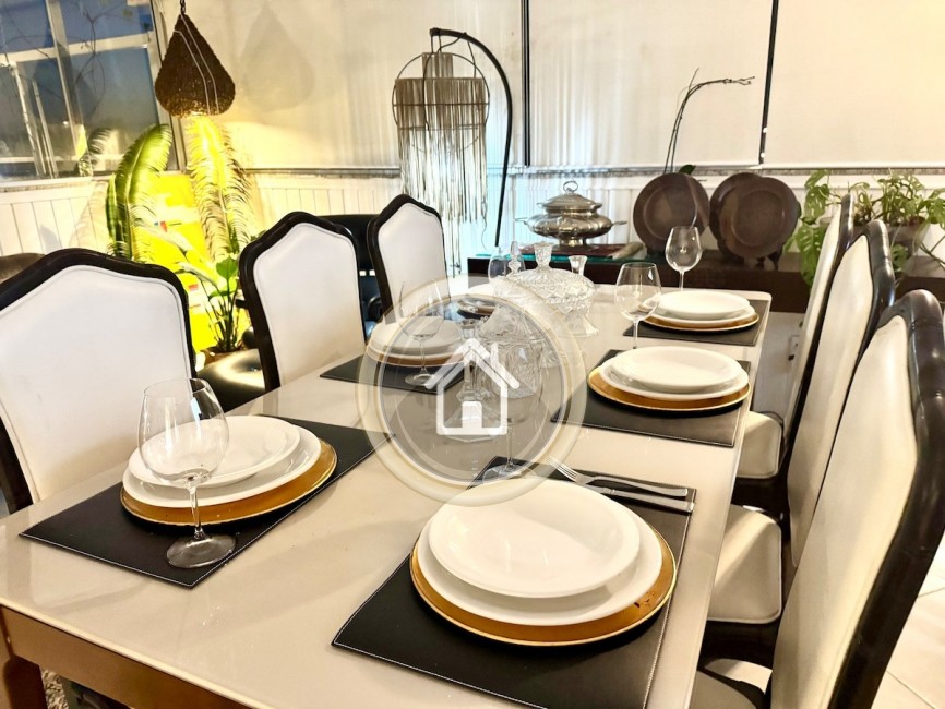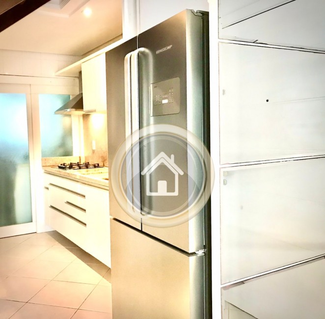 Possui 3 dormitórios, sendo 2 suítes, 4 ar condicionado, piscina, 2 garagens, internet wifi, churrasqueira, sala de estar e jantar, sala de TV, lavabo, sacada, varanda e armários de cozinha.