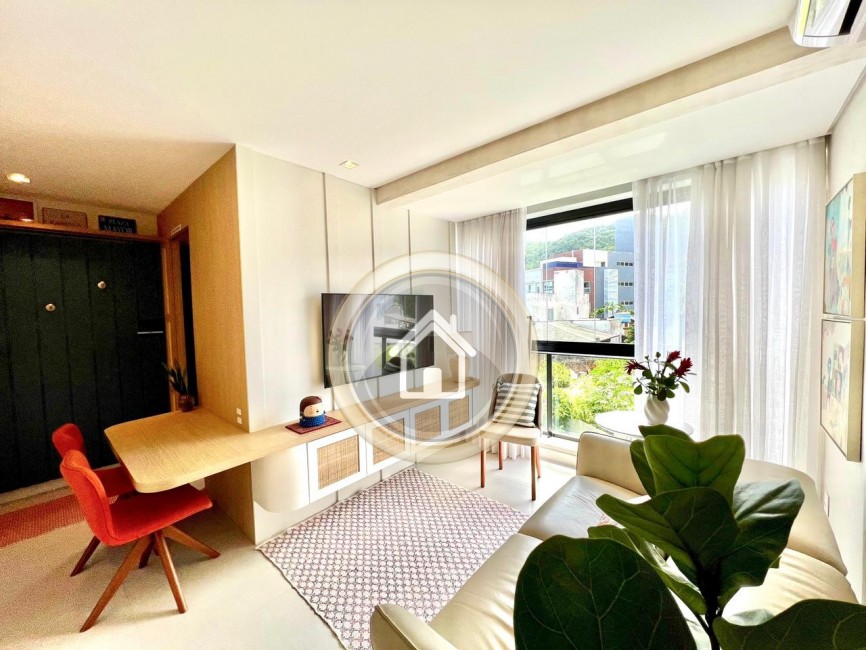 Excelente apartamento de 48 m² em Jurerê, incrivelmente mobiliado, possui na sala um sofá com comandos individuais elétricos da Marca NATUZZI.