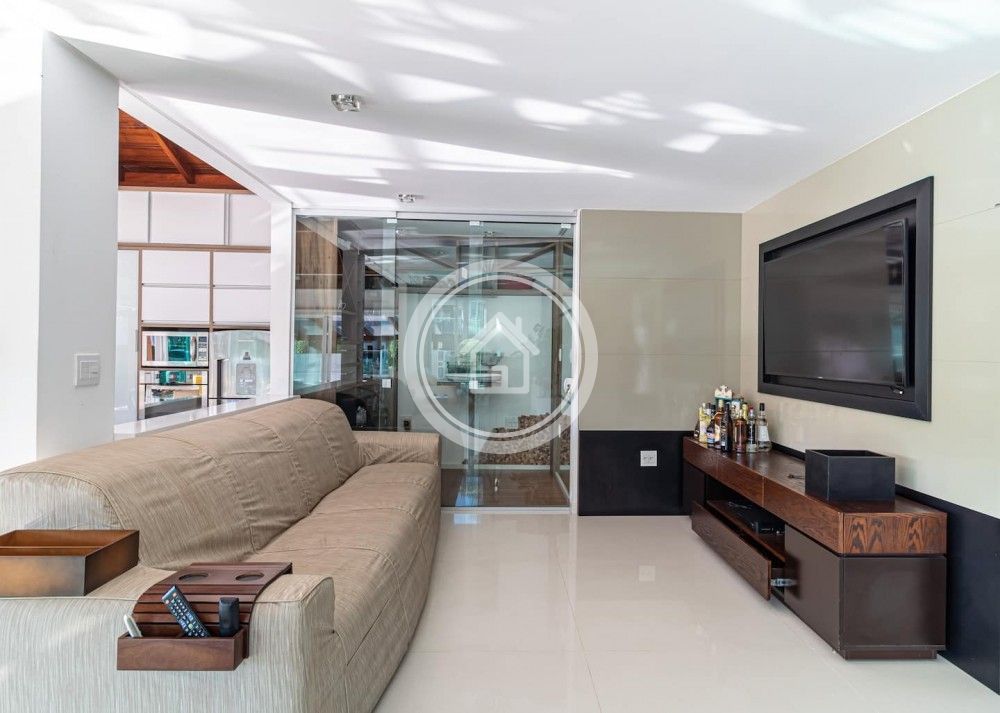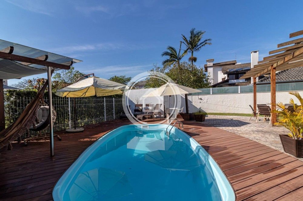 "Aproveitem o charme moderno desta casa, com uma grande sala em conceito aberto, integrando espaço gourmet, churrasqueira, piscina jardins e amplo deck arborizado!