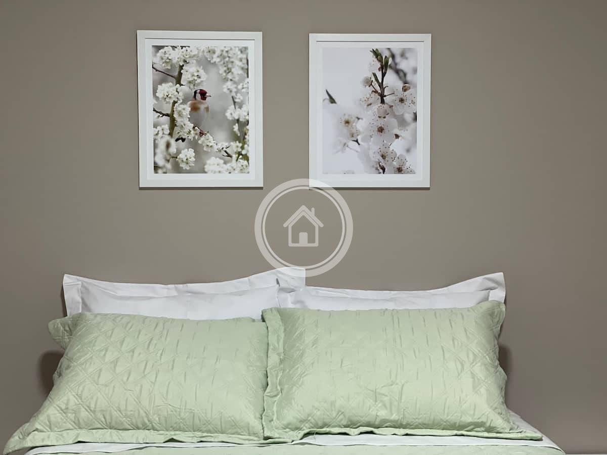 O segundo quarto possui uma cama de casal com colchão ortobom de molas ensacadas, travesseiros macios, ar condicionado split, cômoda espaçosa para armazenar as roupas e uma escrivaninha própria para trabalhos de home office.