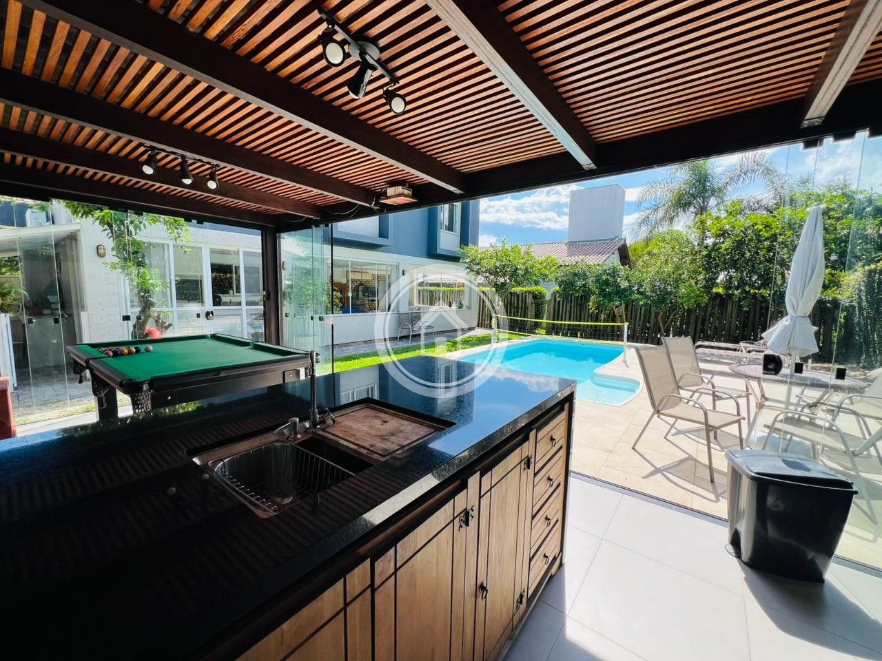 Casa aconchegante, ampla e climatizada, com uma área de lazer com espaço gourmet e piscina; próxima a praia (500m), open shopping e supermercados. A casa dispõe também de internet, TV a cabo e Chromecast. A garagem possui vaga para dois carros cobertos e um descoberto.