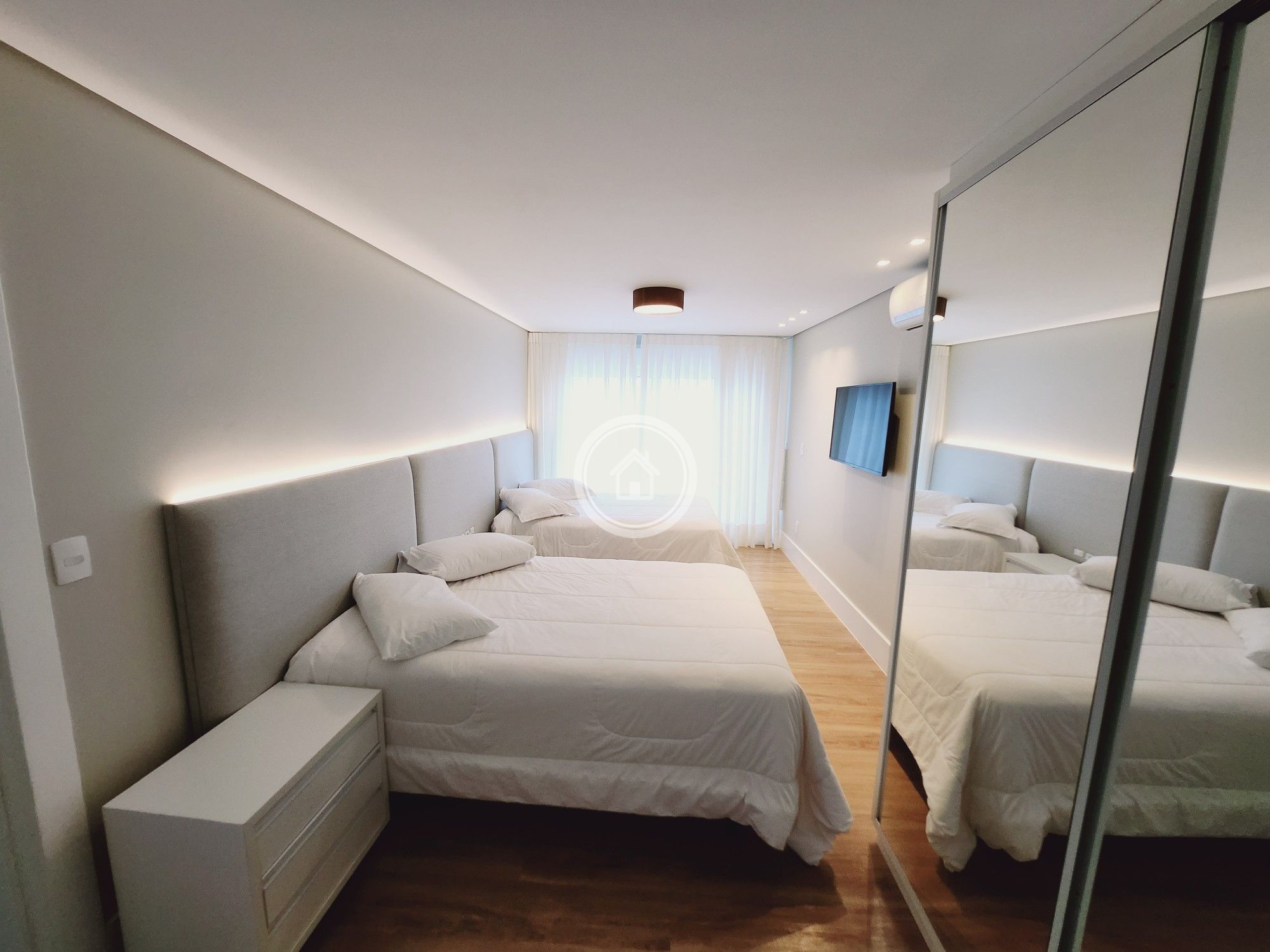 Outra suíte conta com 02 camas, sendo uma casal e a outra box solteiro.