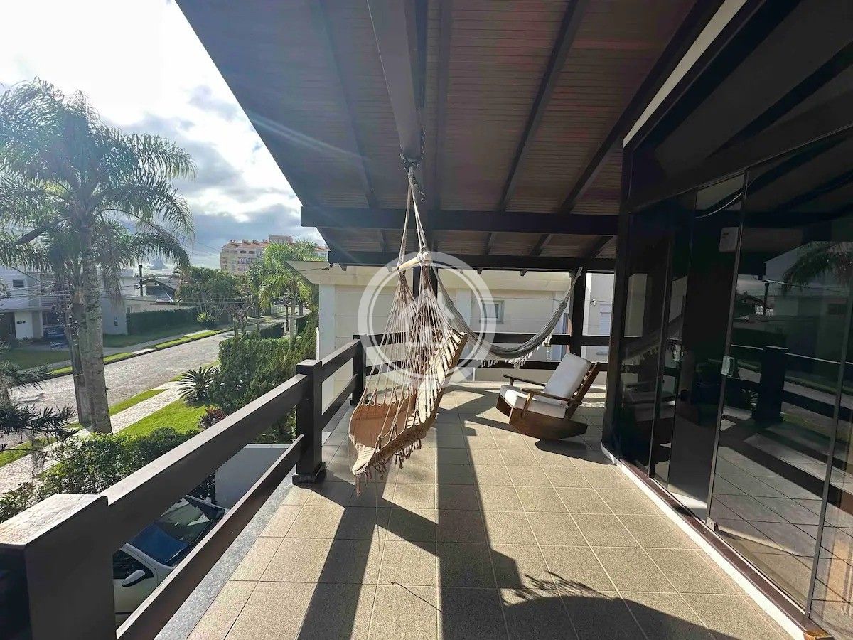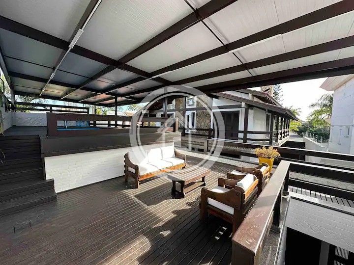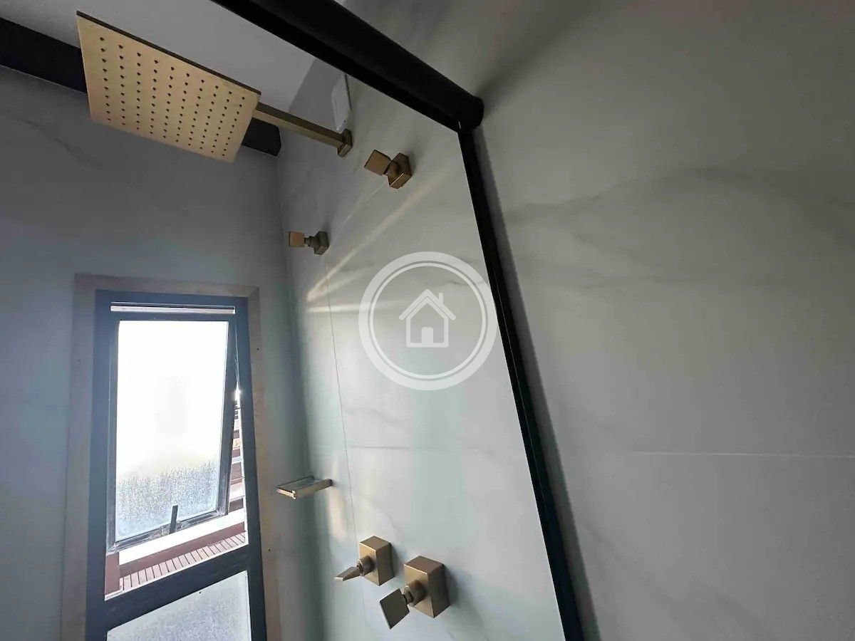 Ainda no andar de cima há um banheiro e saída para a sacada que faz o contorno na casa toda.