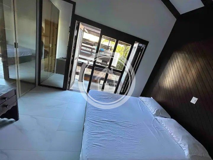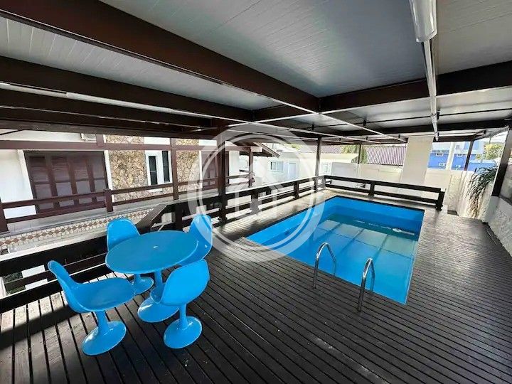 Na parte de trás da casa você terá acesso a casa da piscina(AQUECIDA) onde possui um quarto com duas beliches uma cozinha mais simples, churrasqueira com área externa de jantar e a piscina coberta.