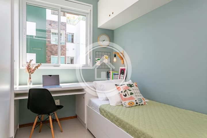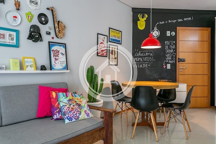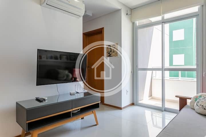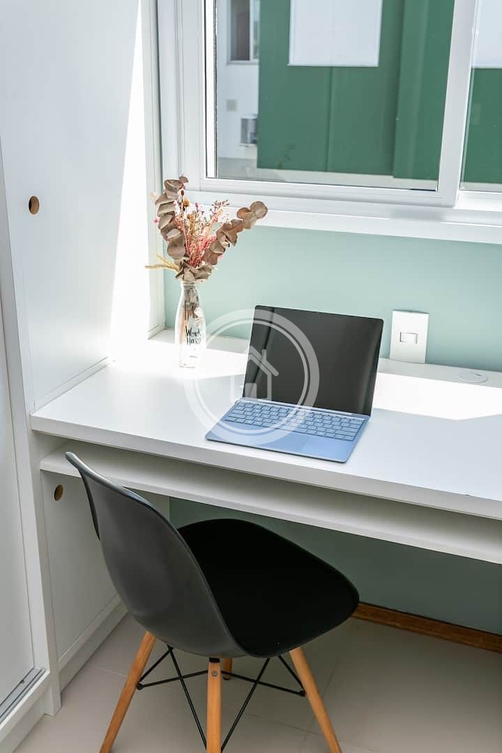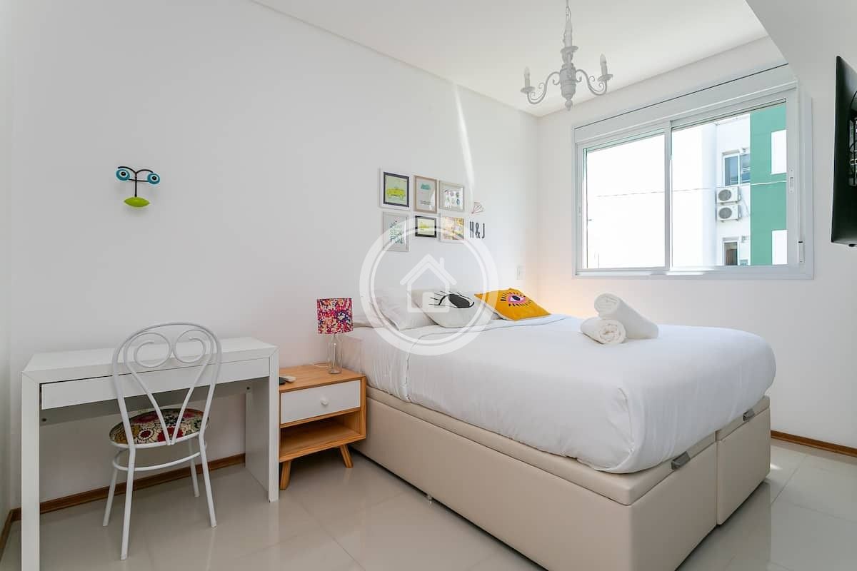 Belíssimo apartamento cheio de estilo localizado na região do novo campeche há 200 m da praia. Equipado com ar condicionado em todos os cômodos, cozinha completa, maquina de lavar roupas, espaço para trabalho nos dois quartos, sacada gourmet com churrasqueira e uma bela piscina no condomínio. Conta também com uma vaga de garagem interna e coberta.