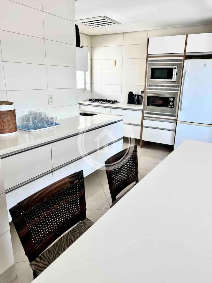 Com 2 suÃtes e 2 demi-suÃtes, 4 banheiros, sala ampla e sacada com churrasqueira, esse apartamento com 190m2 é perfeito para famÃlias ou grupos de amigos que buscam conforto, privacidade e sofisticação.