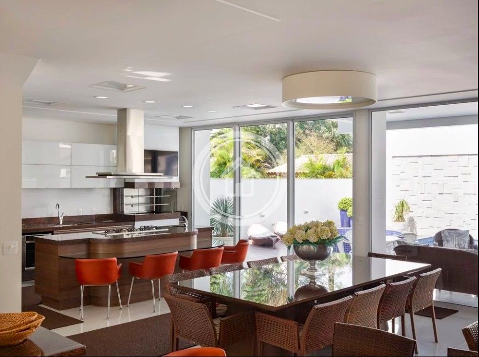 A mansão conta ainda com ar condicionado em todos os cômodos, spa/hidromassagem, jacuzzi, ofurô externo e piscina. Possui 4 garagens e acomoda até 14 pessoas.