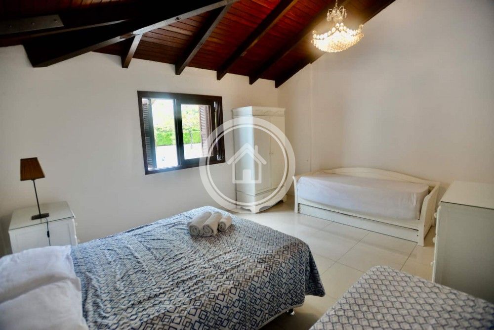 Casa em Jurerê recentemente toda reformada, banheiros novos, com pressurizador da rede de água, chuveiros a gás, piso em porcelanato novo, são 5 dormitórios sendo 4 suítes, todos com cama box tamanho queen (5 camas) e com ar condicionado split. Tenho mais 1 cama box de solteiro que fica junto junto com a cama queen na suite maior e duas bicamas (4 camas de solteiro) e ainda mais 2 colchoes extras de solteiro. Cabem 17 pessoas na casa com conforto.