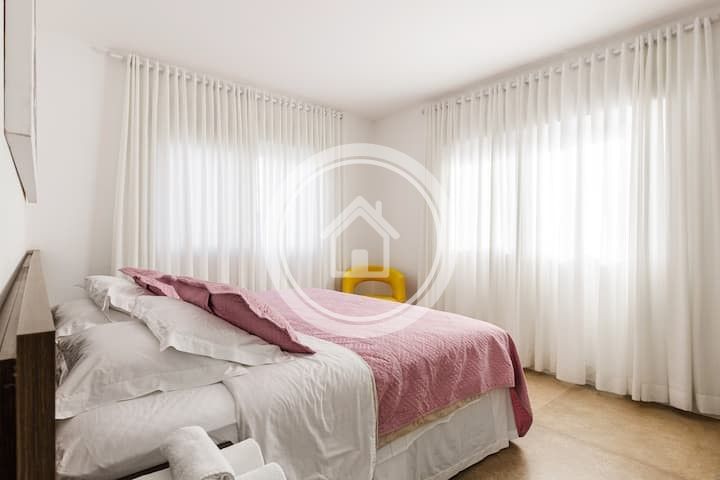Recentemente construída, a casa acomoda confortavelmente até 10 pessoas.