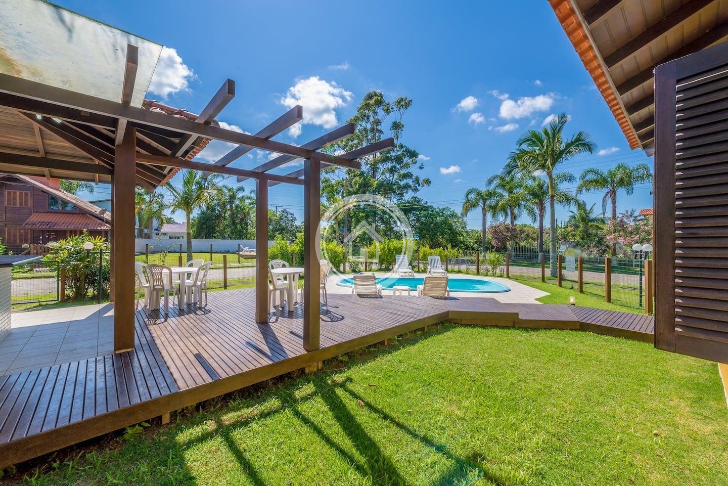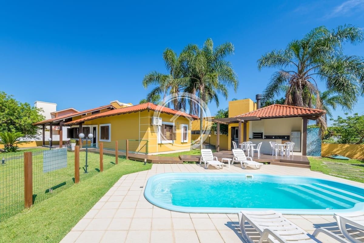Possui piscina privativa com espreguiçadeiras, jardim e churrasqueira interna e externa.