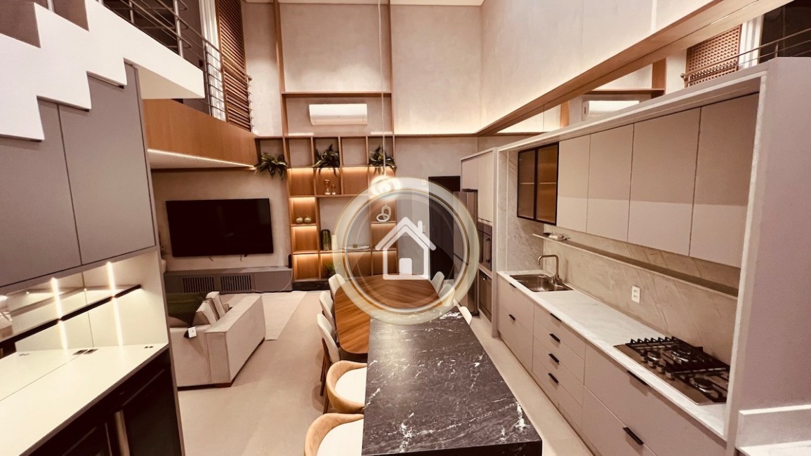 Area ampla e integrada, cozinha, sala de jantar e estar e sacada com churrasqueira, e lavanderia.