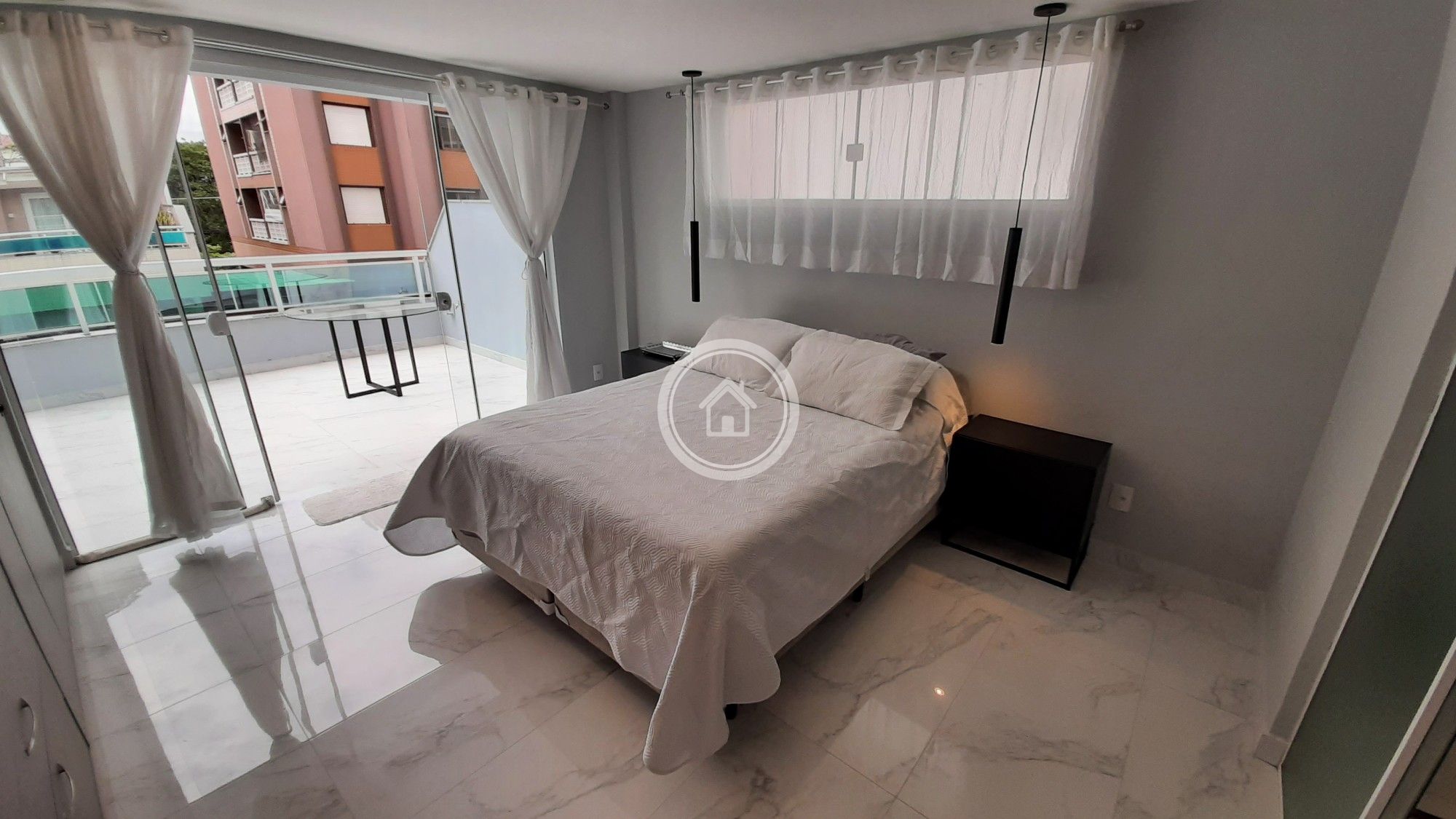 Possui lavabo e uma ampla sacada com mesa e churrasqueira.