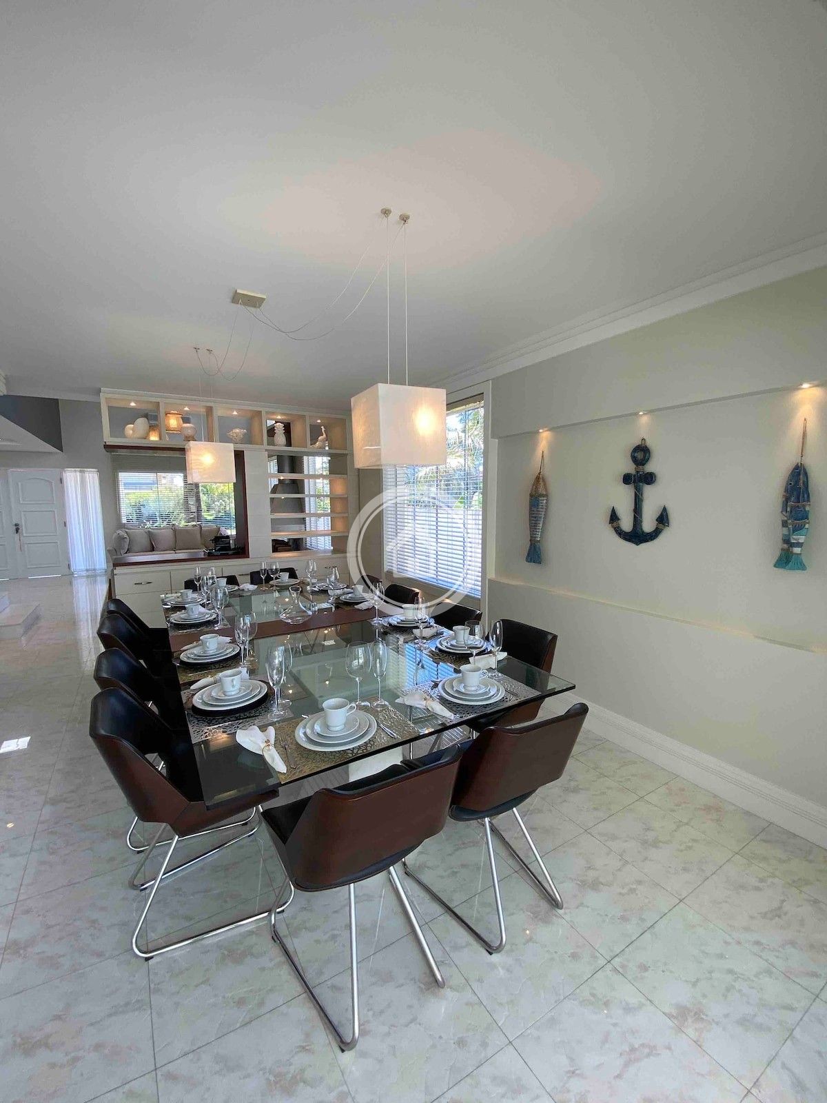 Casa em Jurerê Internacional localizada a 250 metros da praia, ampla, arejada e confortável, 5 quartos ,atende até 11 hóspedes, no total 7 camas .