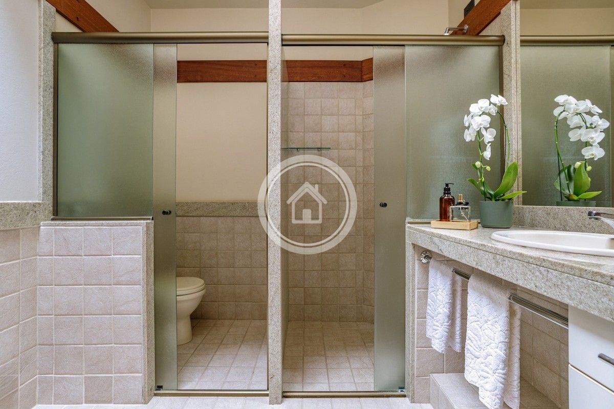 Um dos grandes destaques da casa é a área externa. Desfrute do belo jardim e da piscina, opcionalmente aquecida, com raia de 12 metros, perfeita para a prática de exercícios ou um mergulho revigorante. Uma imponente cerca viva garante total privacidade, criando o cenário ideal para momentos relaxantes ao ar livre, em família ou entre amigos.