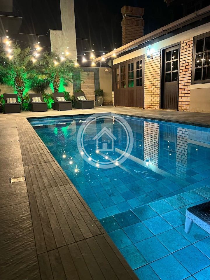 4 suites + 3 quartos e área de cinema com acomodações, comportando até 25 pessoas.