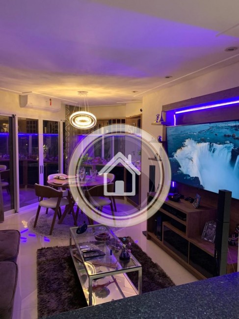 Sala com Smartv com acesso à internet, vídeo game PS4, barzinho, sofá retrátil, jogo de luzes, adega de vinho, mesa com 4 cadeiras.