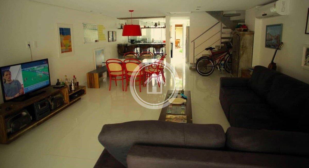Casa de 3 andares moderna, com 6 suítes em condomínio na beira da praia de Jurerê. Casa equipada com 2 churrasqueiras, lavabo, e sala com cozinha americana ampla. Fica próximo a bares, restaurantes, farmácia, supermercado, sorveteria.
