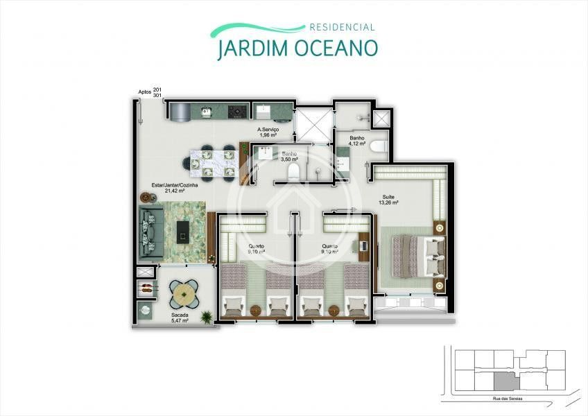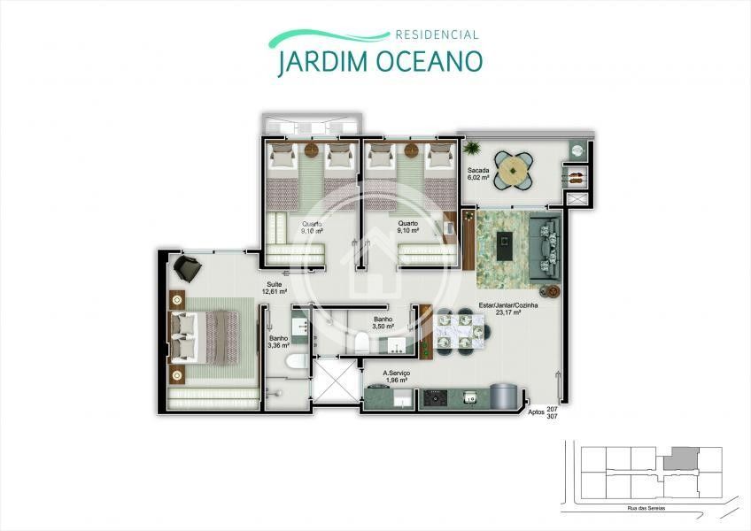 Apartamento 2 sendo 1 suíte, banheiro social, sala de estar e jantar, cozinha, área de serviço e sacada com churrasqueira a carvão e 1 vaga de garagem. As unidades contam com aquecimento de água a gás, piso porcelanato, esquadrias com persianas automatizadas nos dormitórios e espera para ar condicionado split. O empreendimento conta com espaço gourmet, piscina e elevador e está localizado à 300 metros da Praia e próximo a agência dos bancos, escolas, mercados, farmácia e comercial em geral.