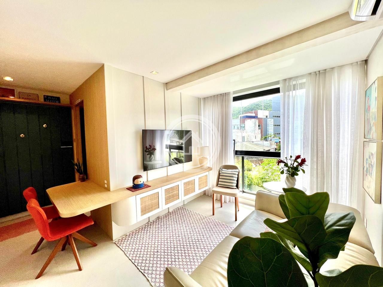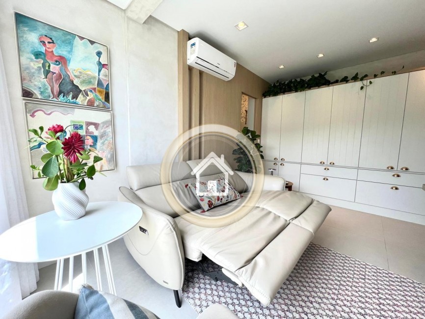 Excelente apartamento de 48 m² em Jurerê, incrivelmente mobiliado, possui na sala um sofá com comandos individuais elétricos da Marca NATUZZI.